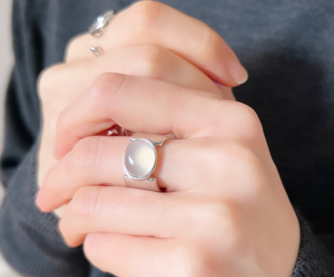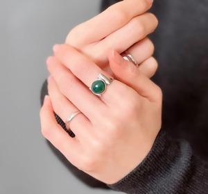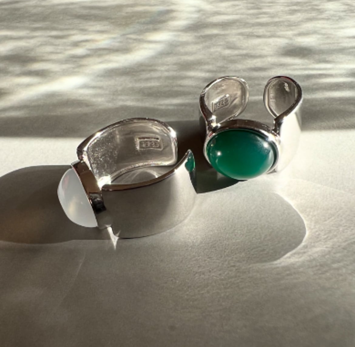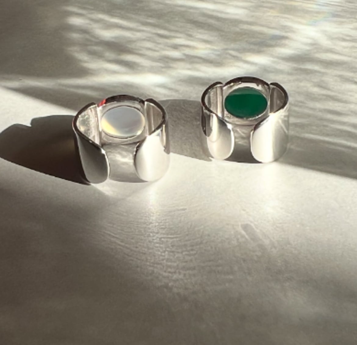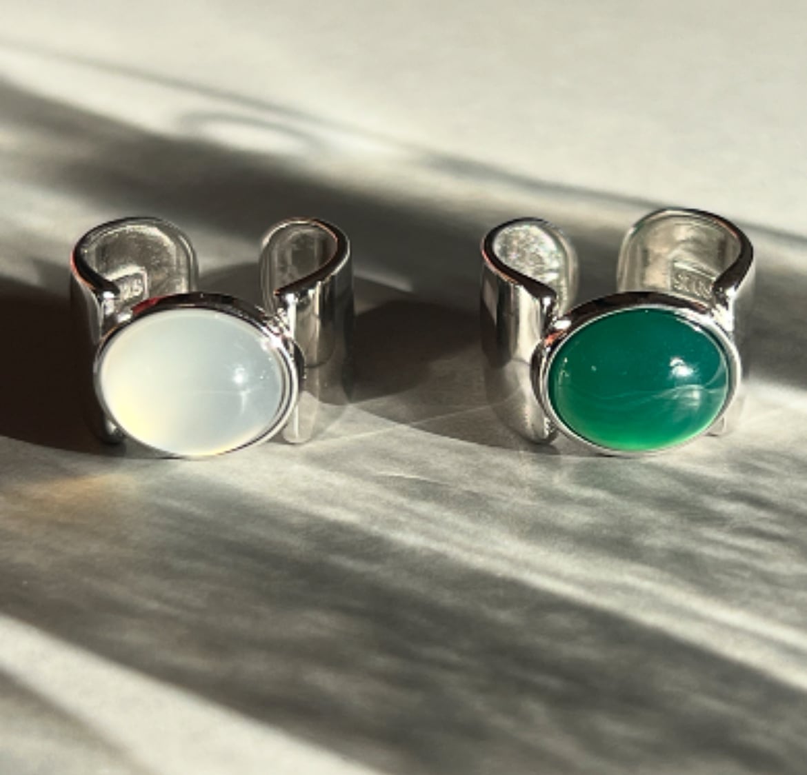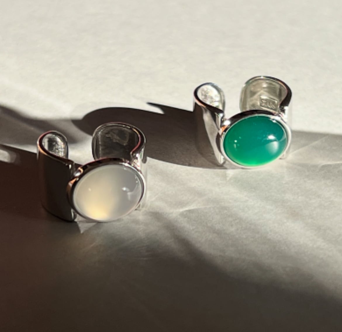グリーンカルセドニーとホワイトカルセドニーを使用したリング。