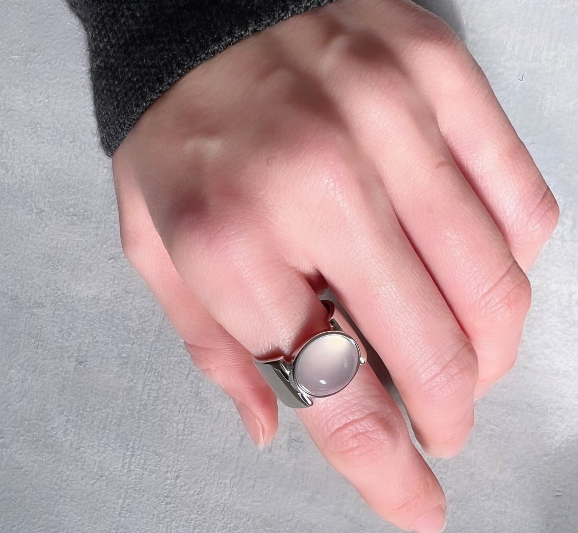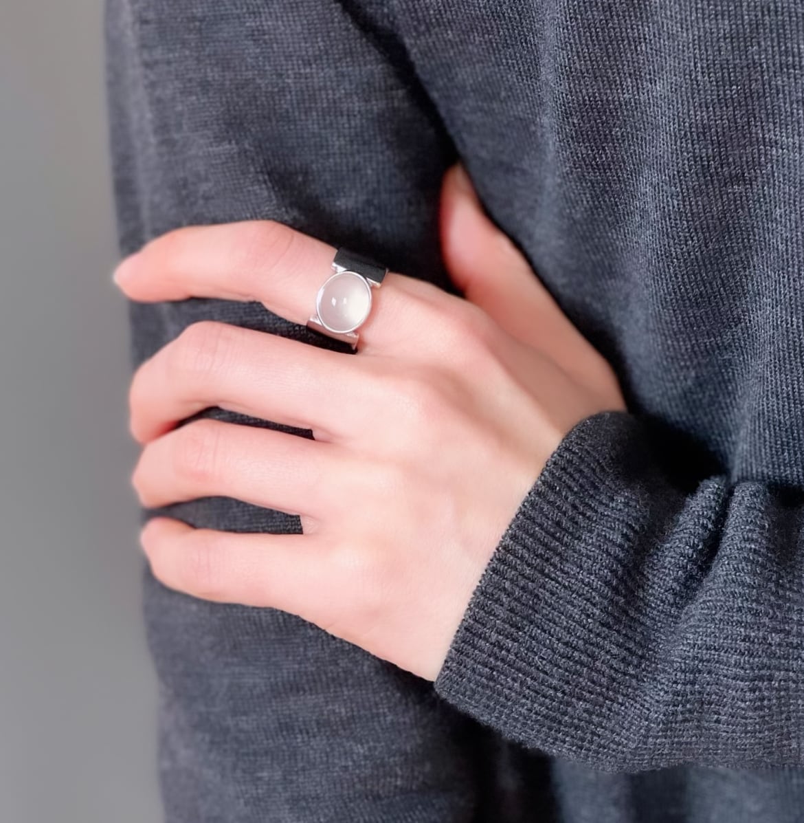 1つで十分な存在感を放ち、天然石の重厚感があるもののいやらしい重厚感ではなくクリーンな印象で手元に豊かな表情を与えてくれるジェンダーレスなデザインとなっております。