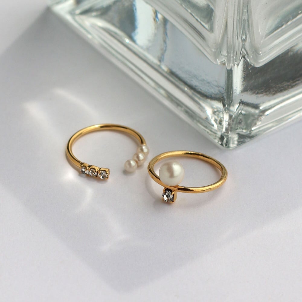 サイズ:1つ 9号 ストーン0.4cm パール0.6cm/3つ フリーサイズ ストーン0.2cm パール0.3cm