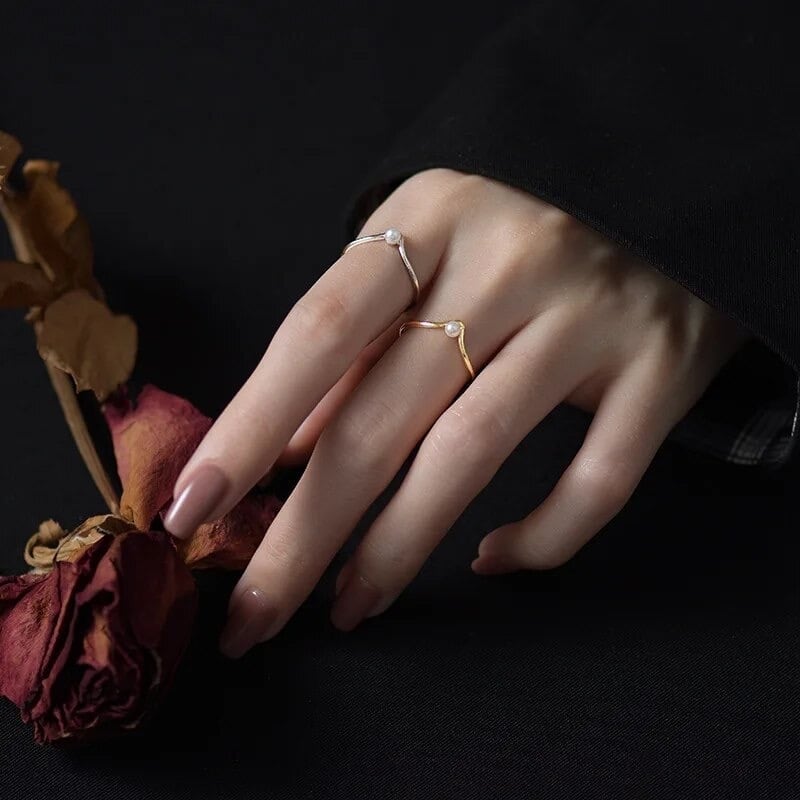 滑らかな曲線に一粒の貝パールを添えたリング。