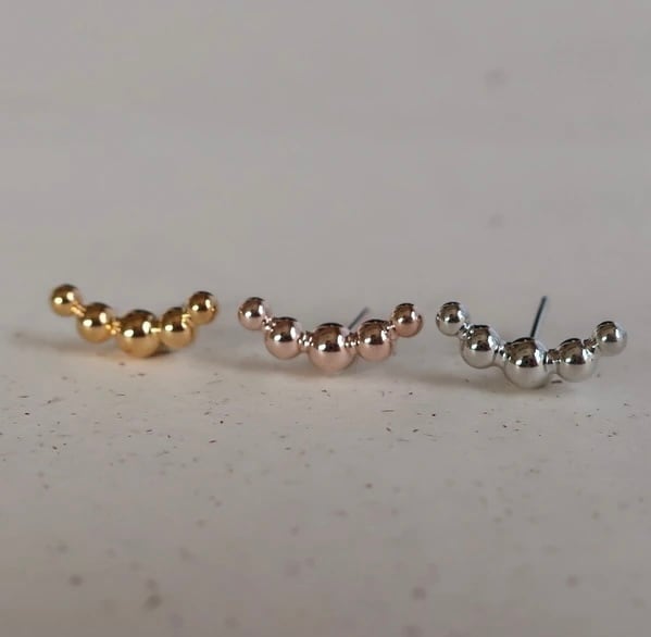 小さなメタルボールがスマイルラインをつくり、トレンド感あるデザインに。