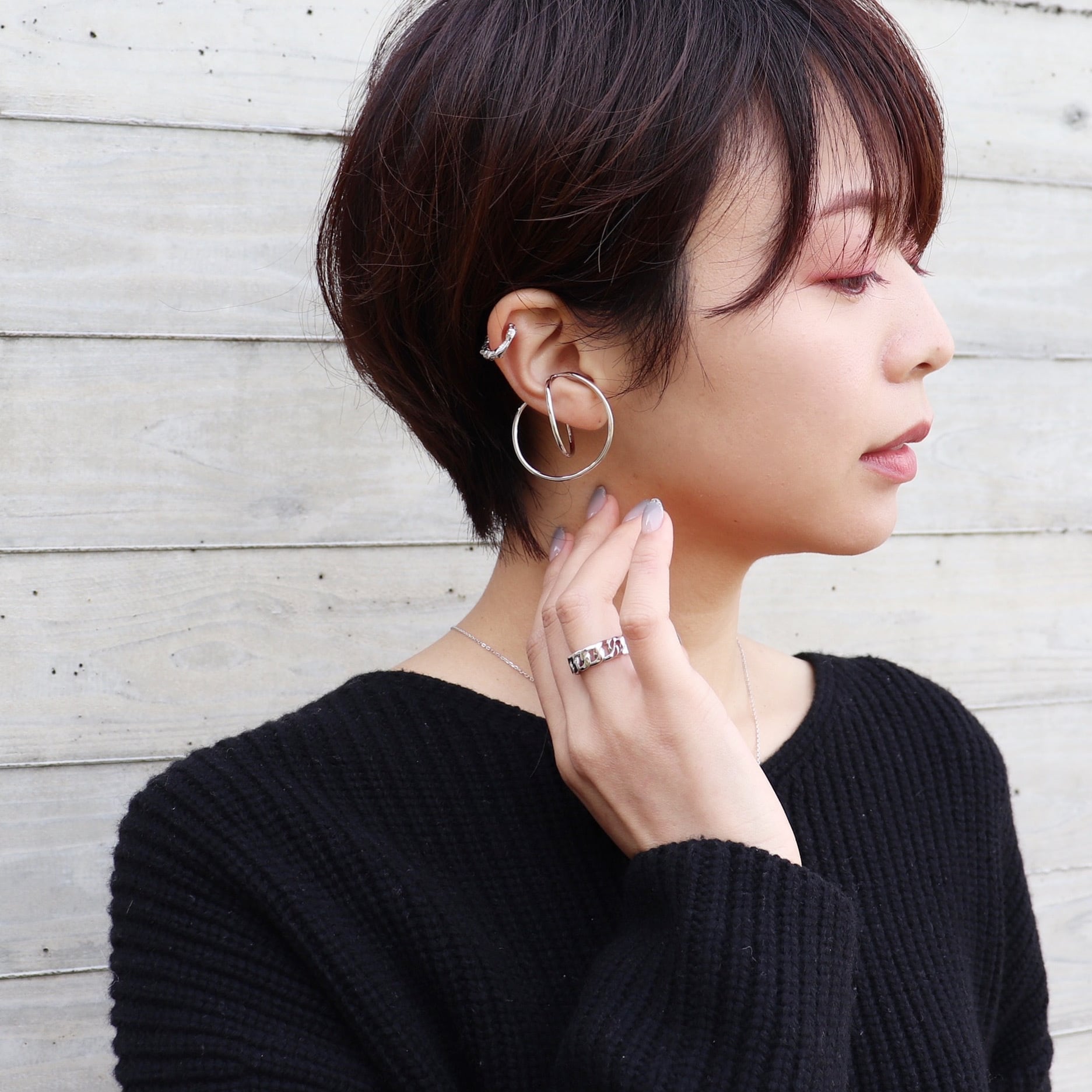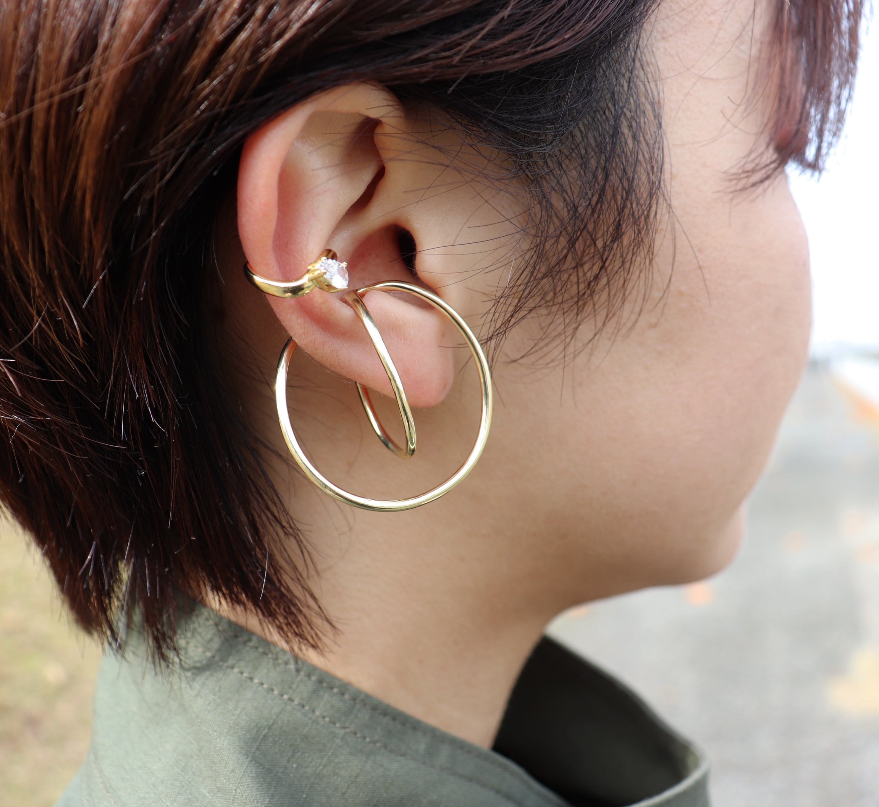 滑らかで奥行きのあるデザインで360度楽しめ、女性らしい雰囲気の中にモードな存在感で今までにない新たな魅力を引き出してくれるイヤーカフです。