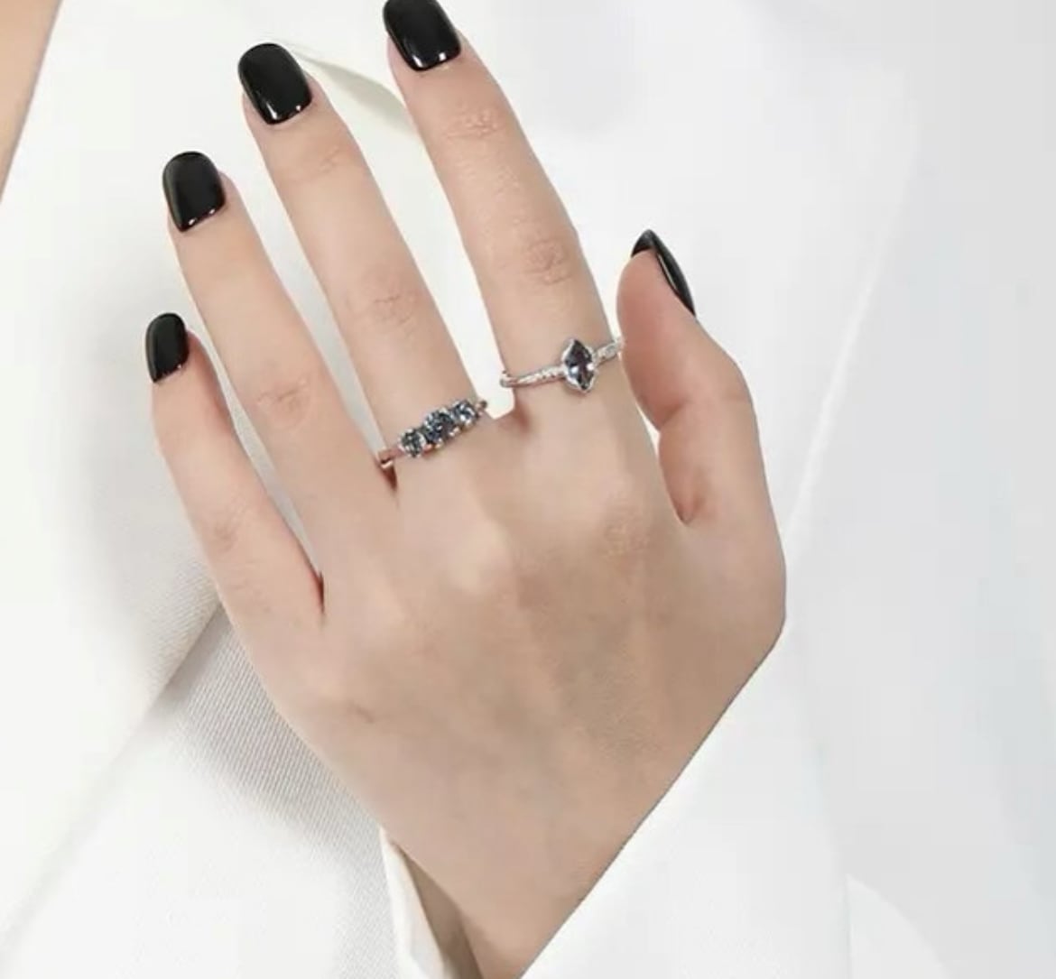 マーキスカットのアイスブルーストーンを縦向きにセッティングし、優しい発色とさりげない煌めきが指先に柔らかい印象を添えてくれます。