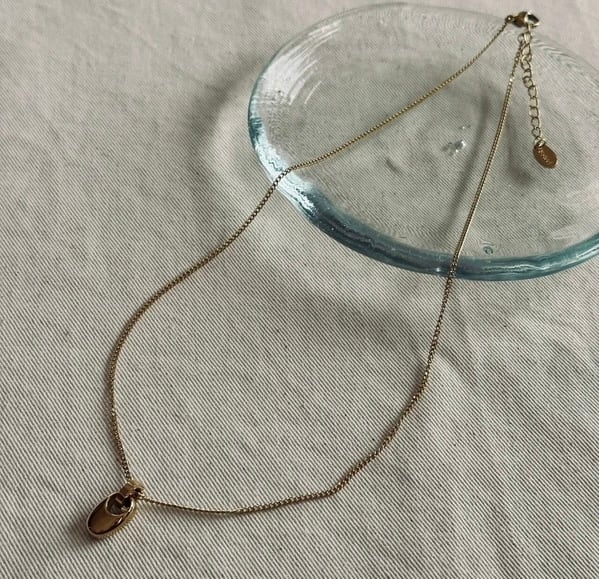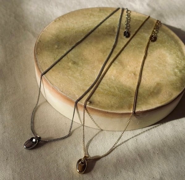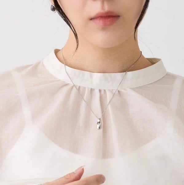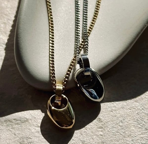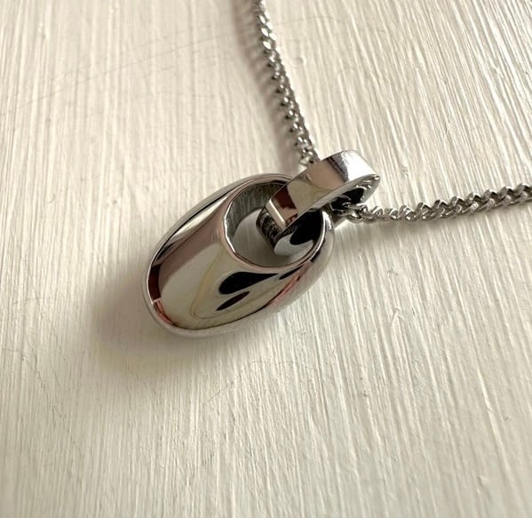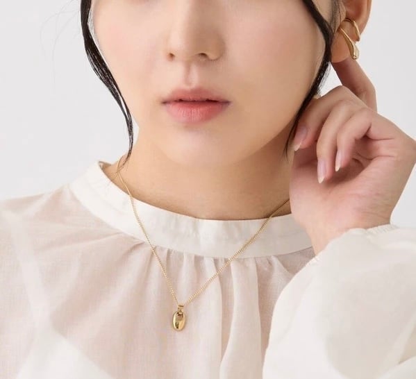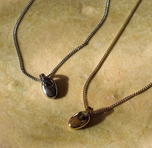 丸みを帯びたオーバル型のモチーフがアクセントのサージカルステンレスネックレス。