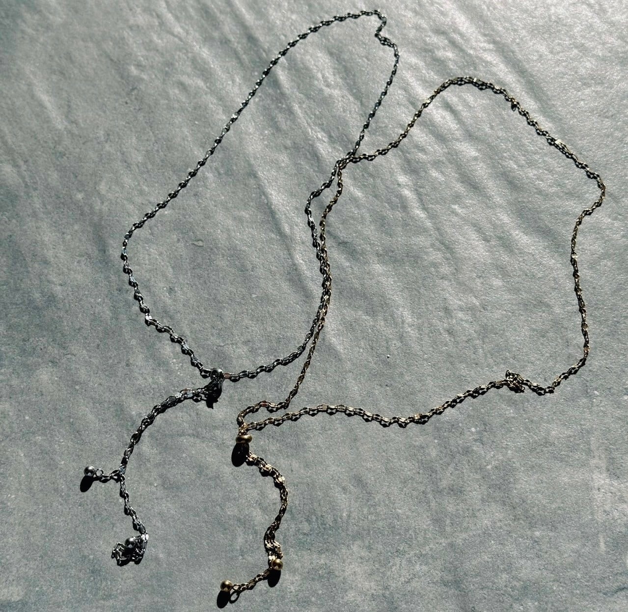 ラリエットタイプのロングネックレスなので華奢なチェーンながらも存在感があり、スタイリングを華やかにしてくれます。