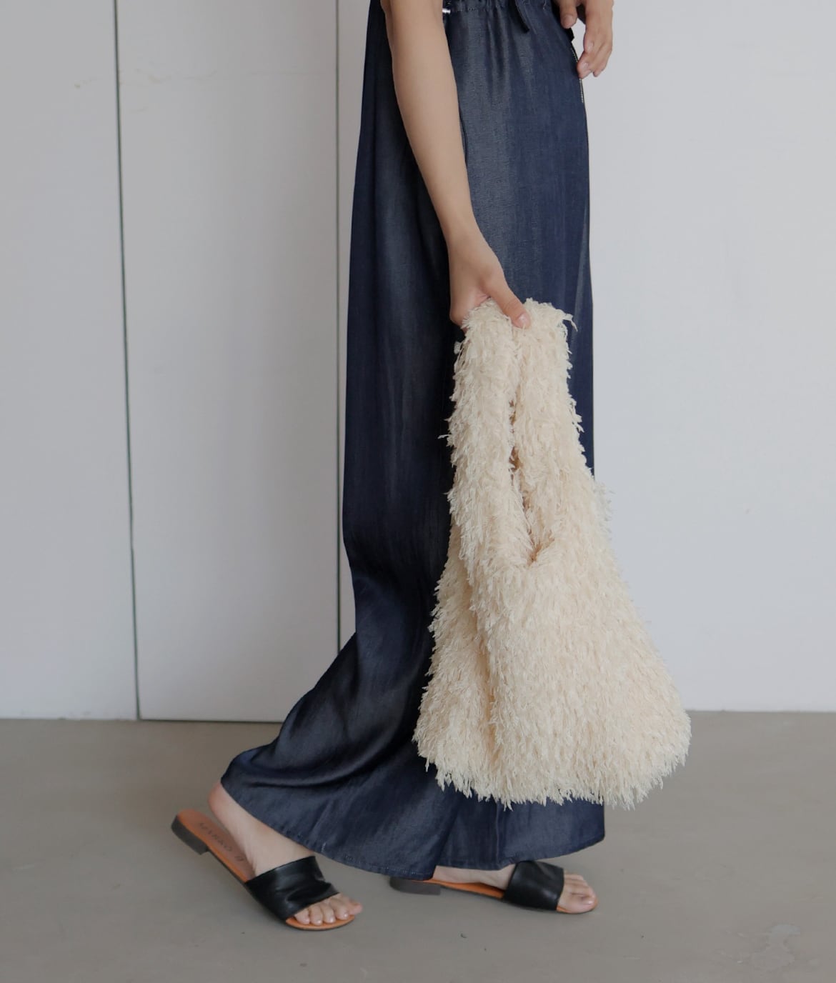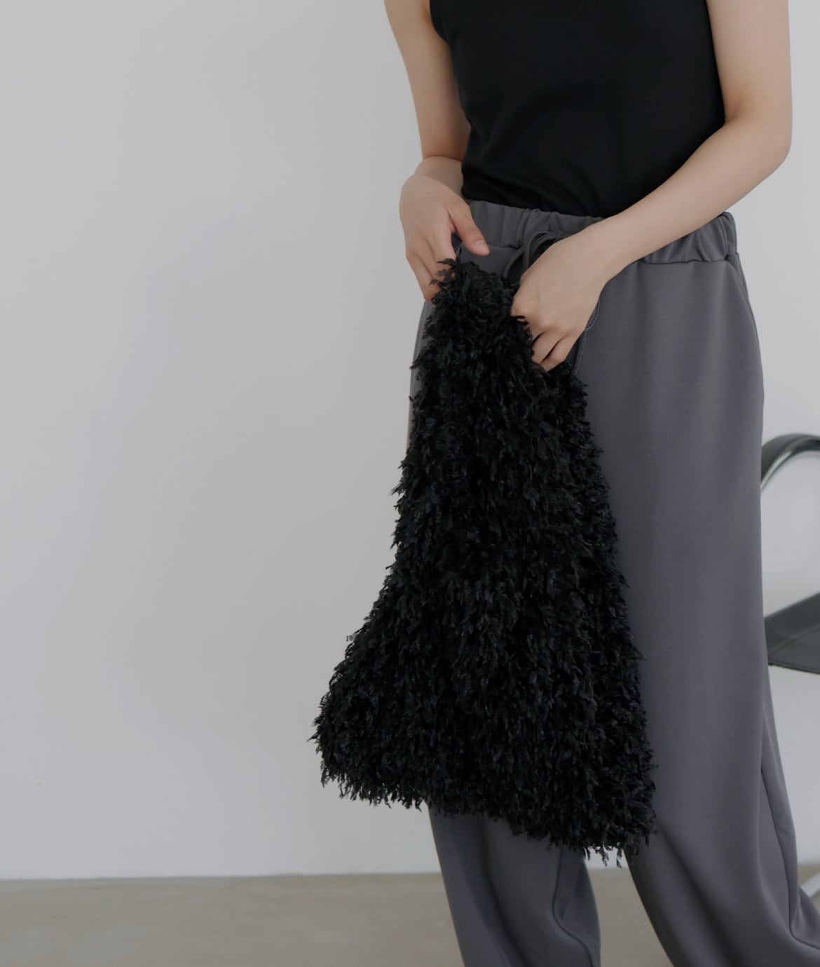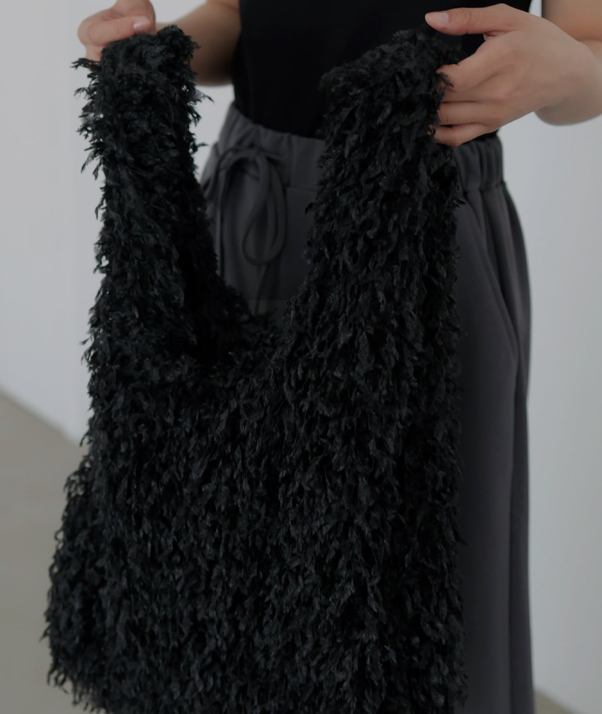 持つだけでコーディネートのアクセントになるフェザー素材が可愛いトートバッグ。