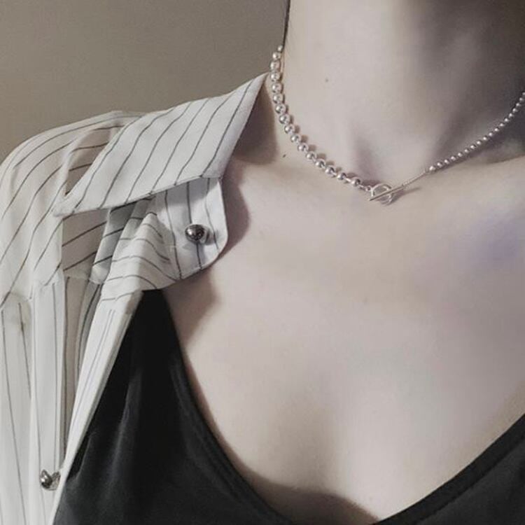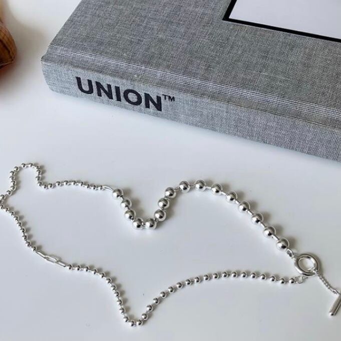 silver925素材のフロント切替チェーンが特徴的なネックレス。