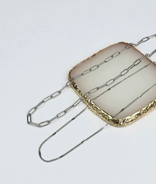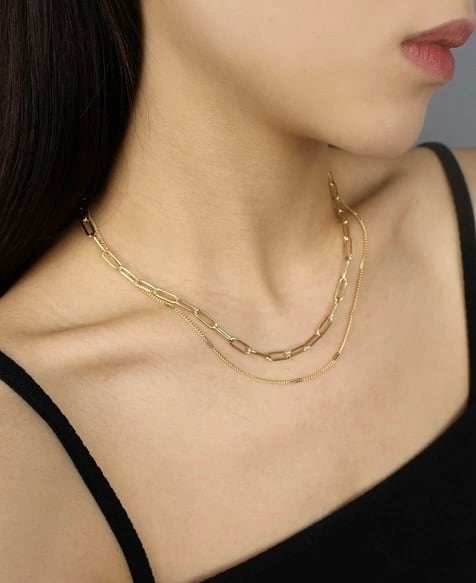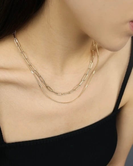 オーバルチェーンネックレスとデザインチェーンネックレスがセットになったアイテム。