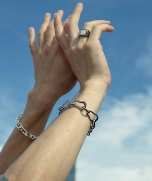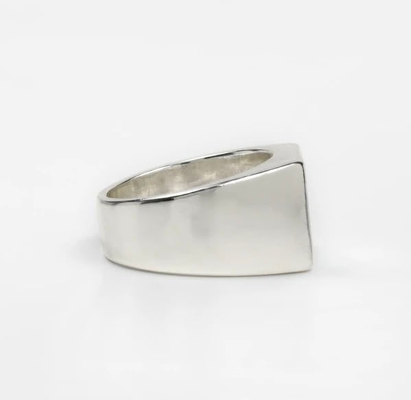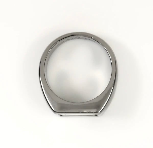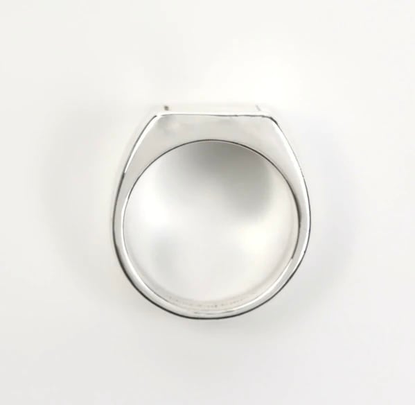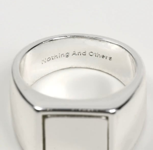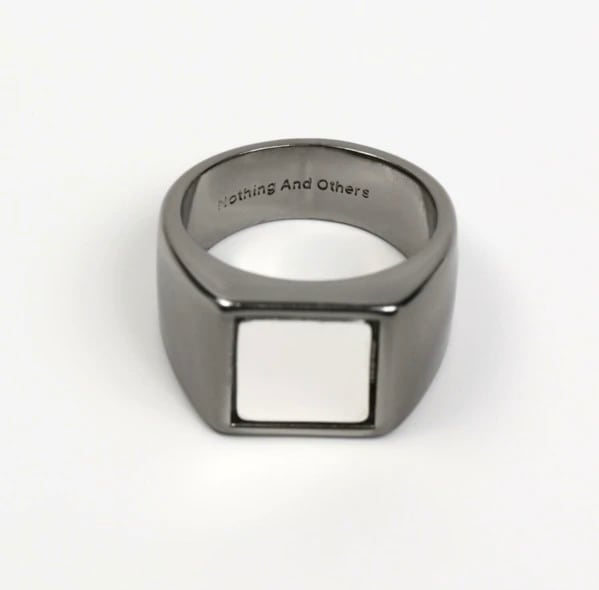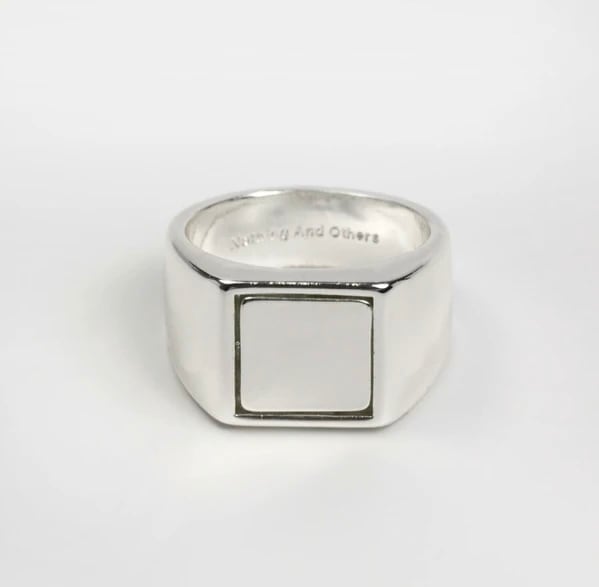 ややボリュームのあるメタルリングに、スクエアパーツが付いたリング。