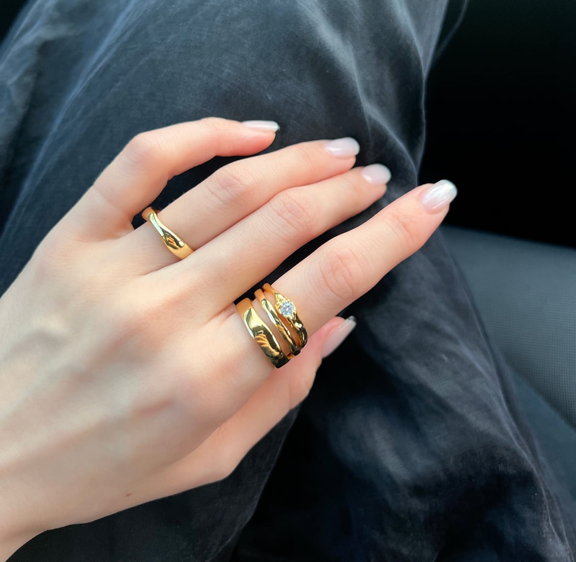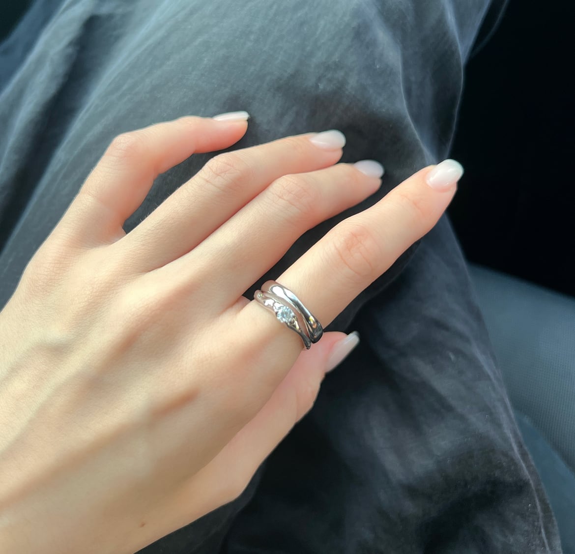 シンプルなデザインなのでお手持ちのリングとの重ね付けにもおすすめ。