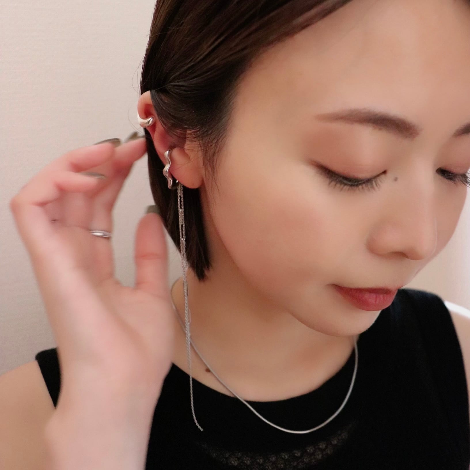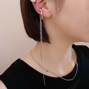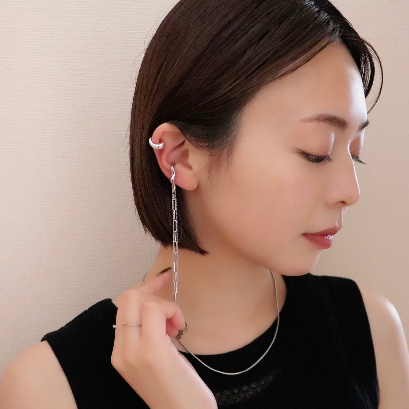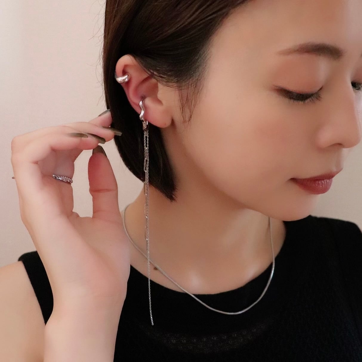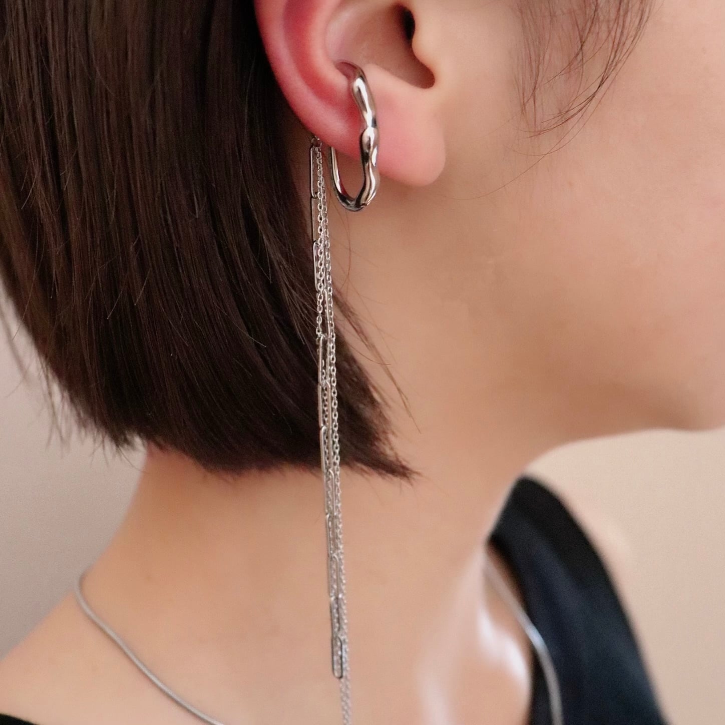 3本のロングチェーンが耳元で揺れる、存在感たっぷりのイヤーカフ。