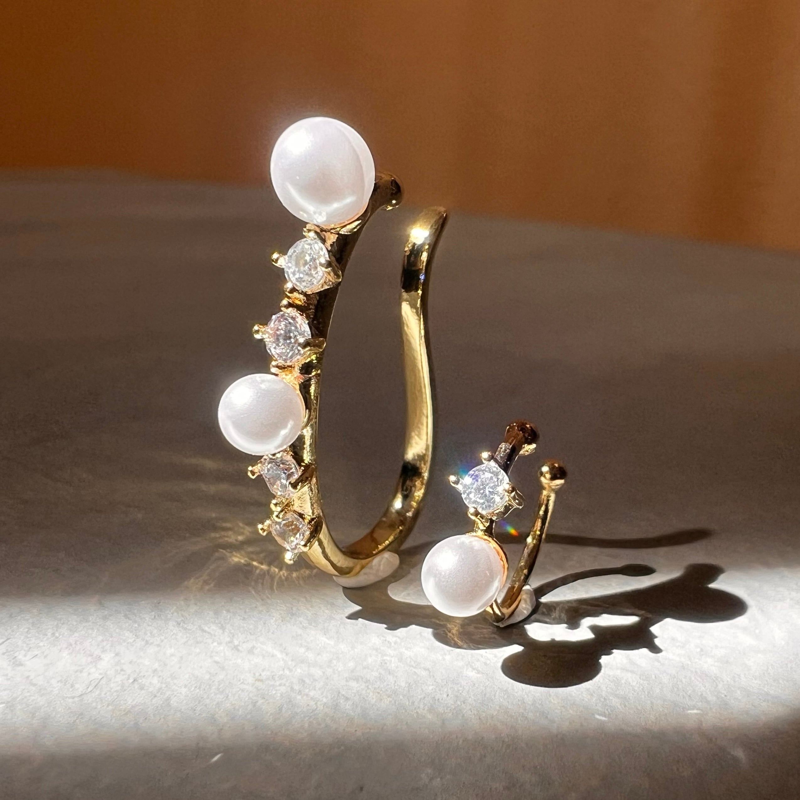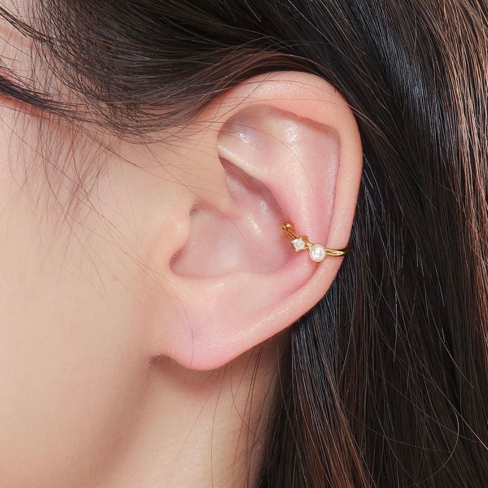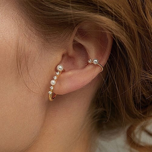 上品な輝きを放つ ジルコニア × パールのイヤーカフ2点セット。