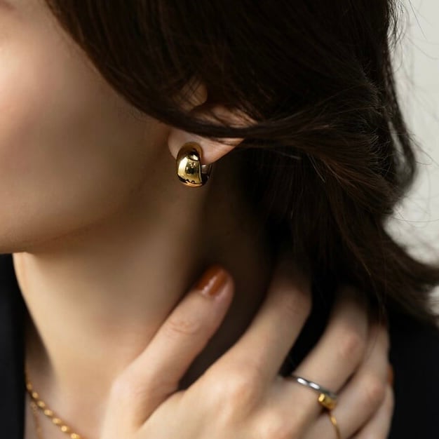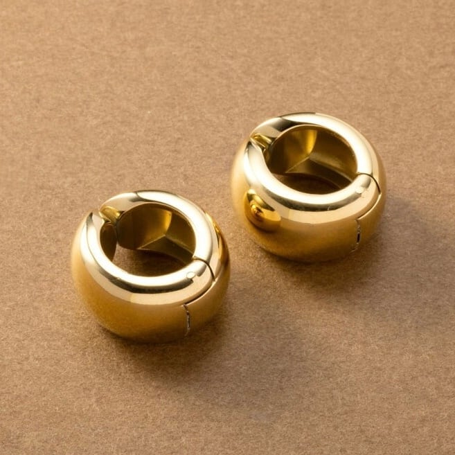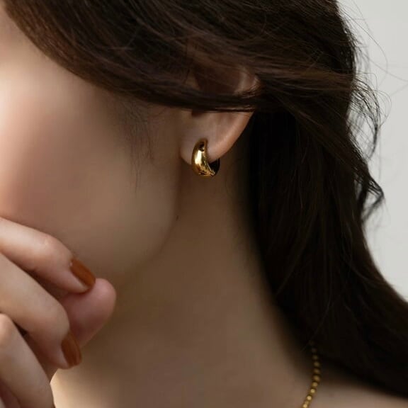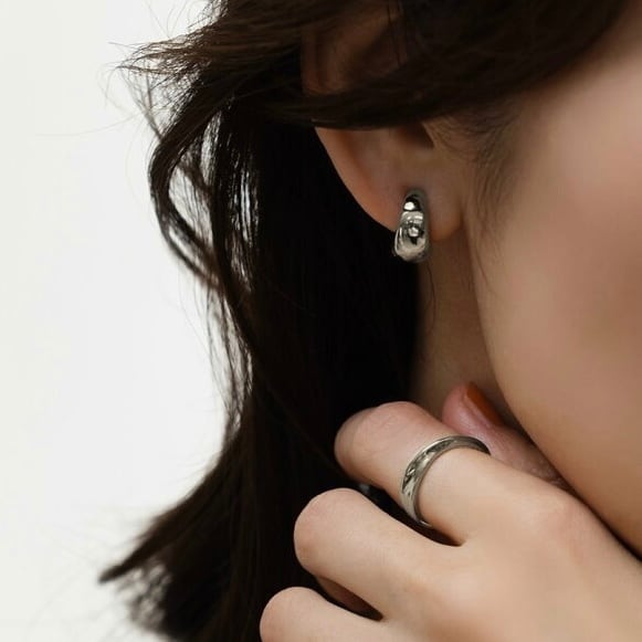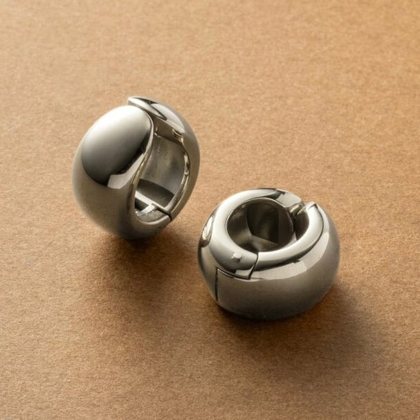 ぷっくりとした立体フォルムが存在感を放つ、サージカルステンレス製フープピアス。