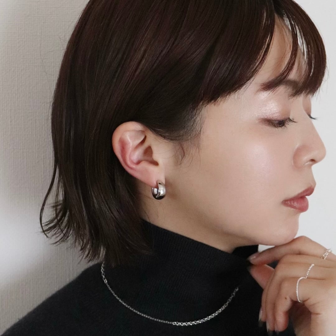 ぷっくりとした立体フォルムが存在感を放つ、サージカルステンレス製フープイヤーカフ。