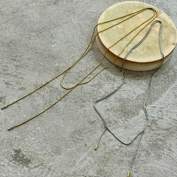結び方で表情が変わる、自由な発想のサージカルステンレスネックレス。