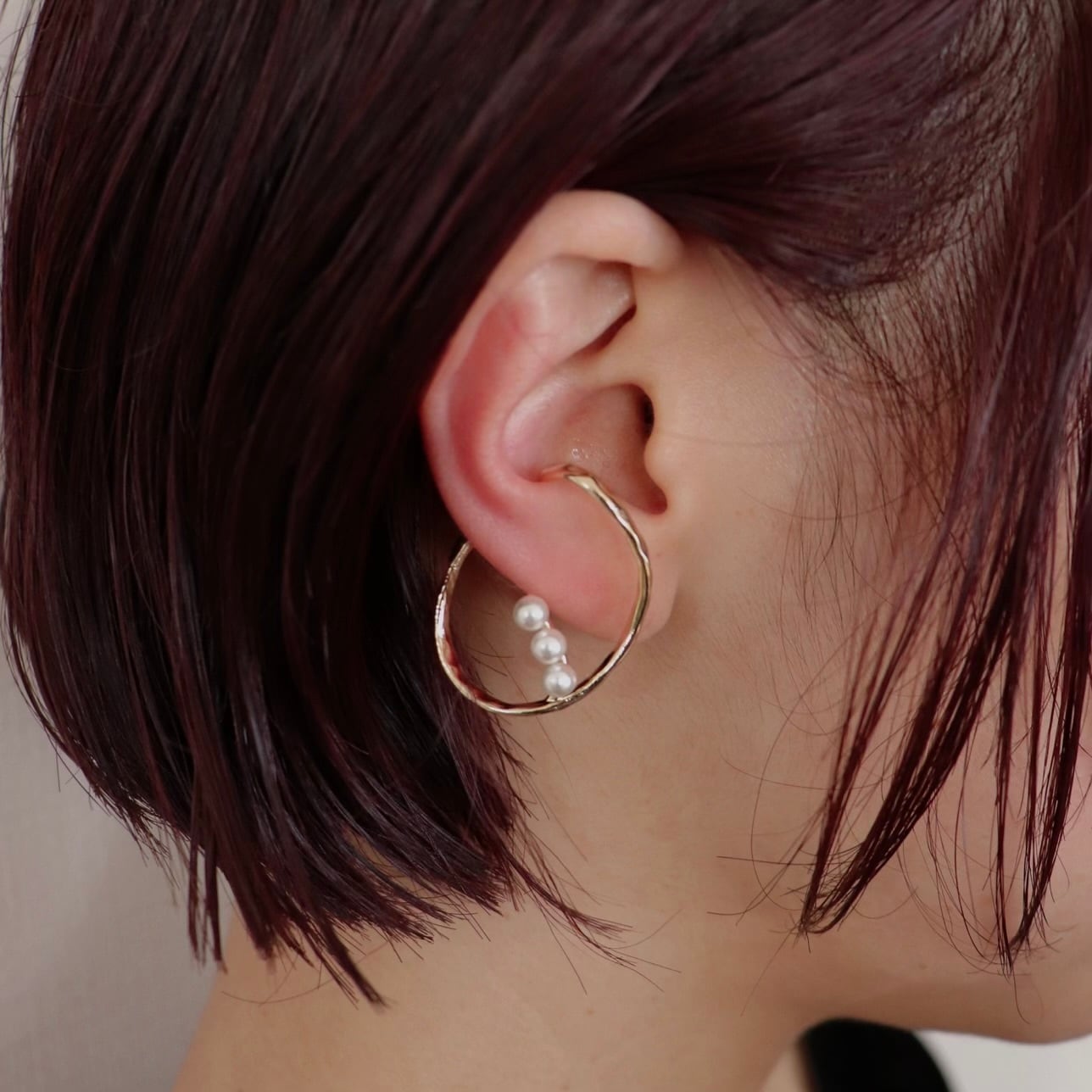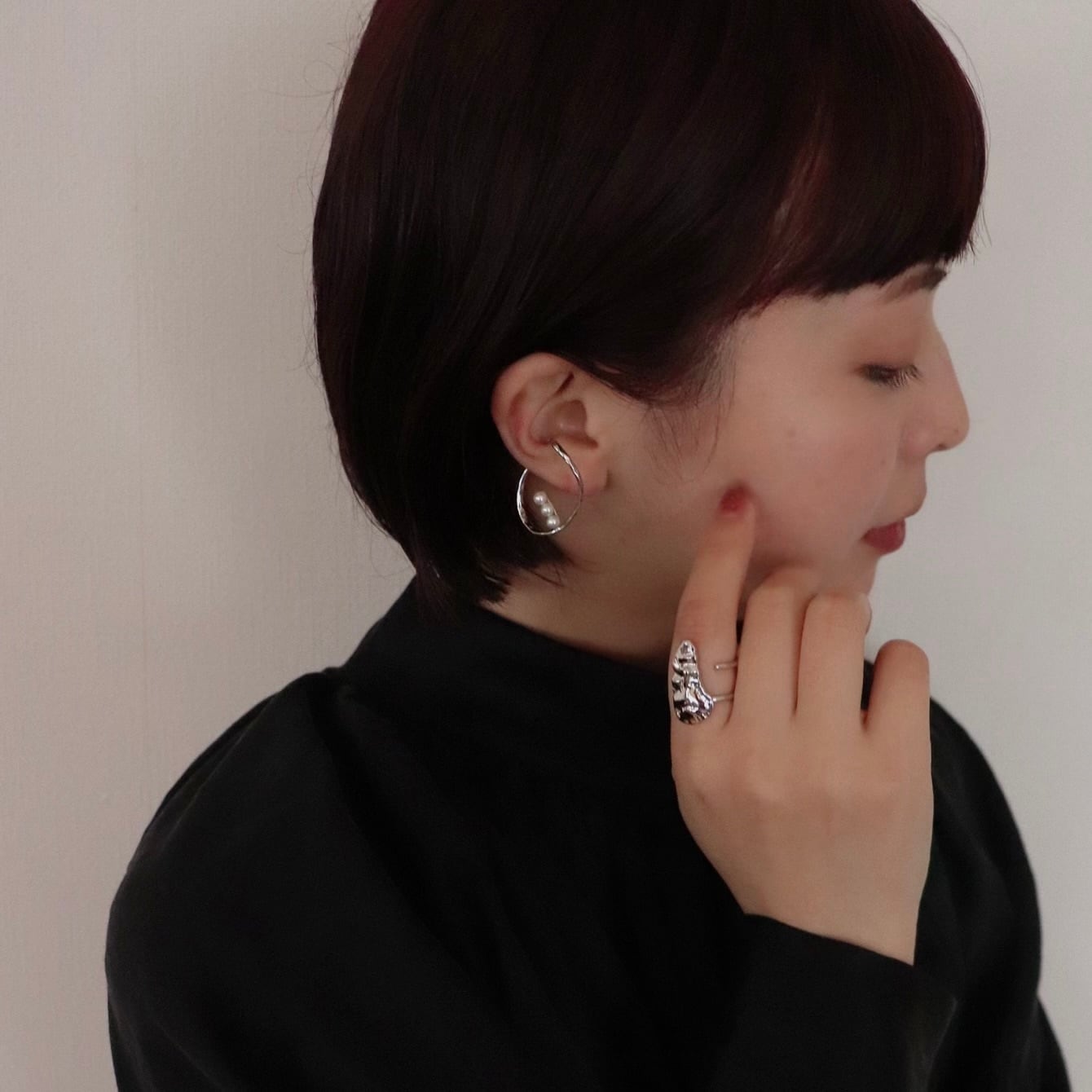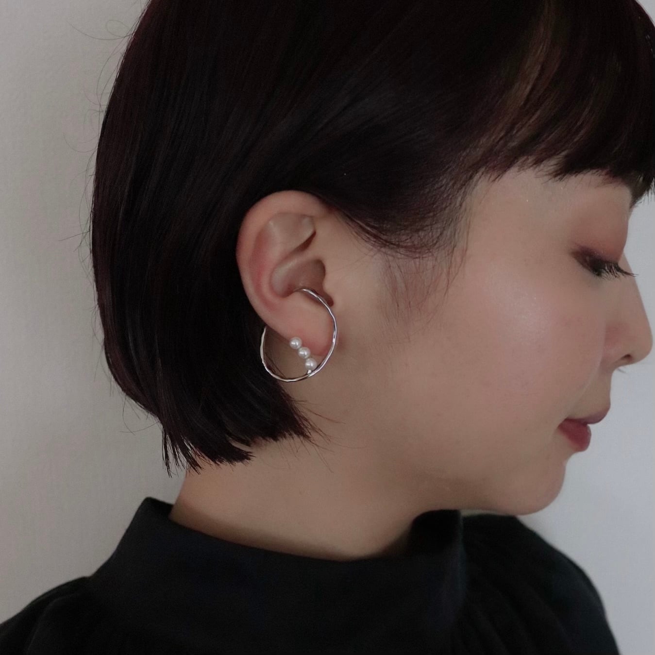耳を包み込むような大ぶりなイヤーカフ。