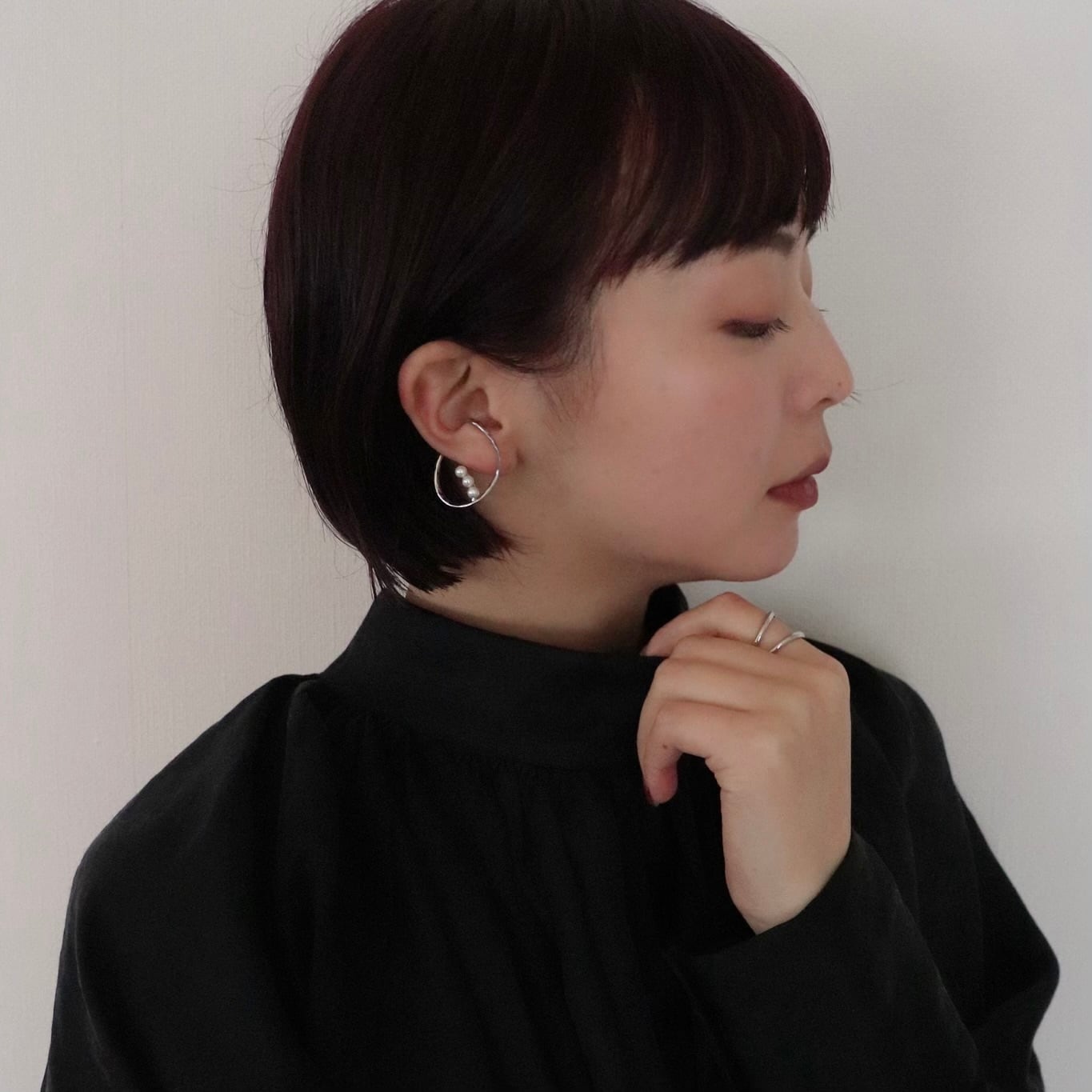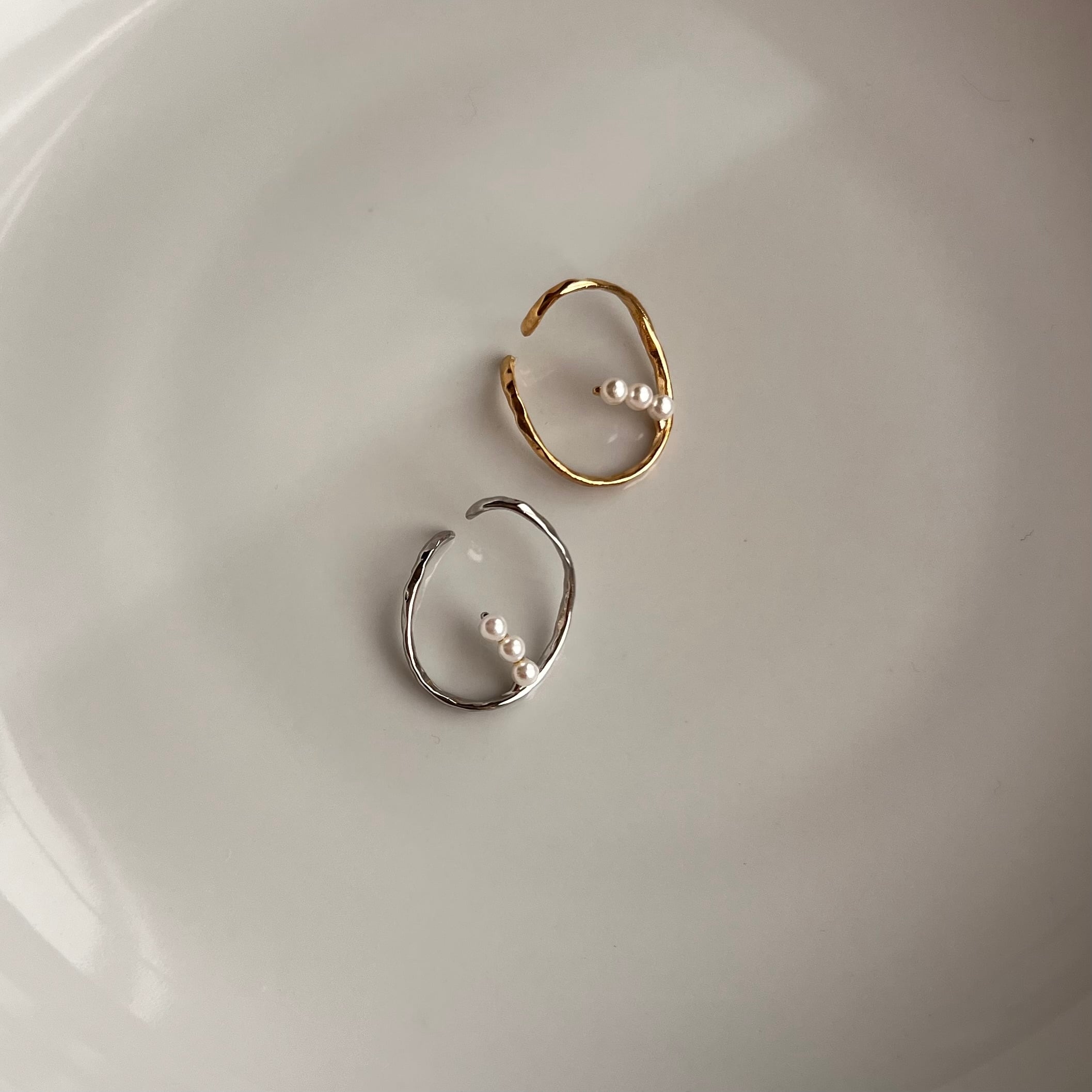浮かぶようにセットした3粒のパールが、さり気なく輝きをプラスします。