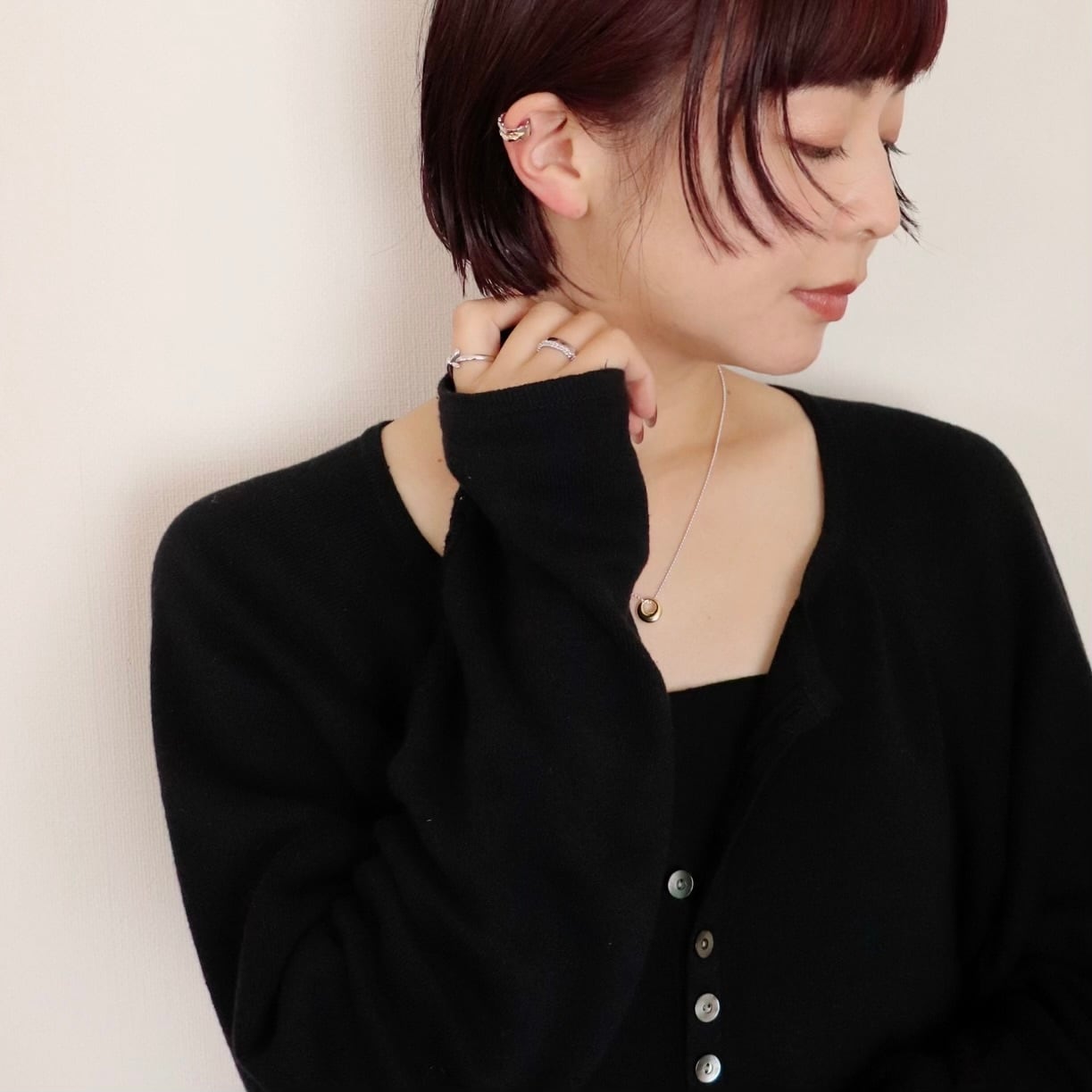 シルバーとのコントラストが美しく、日常のコーディネートにさりげない華やかさを添えます。