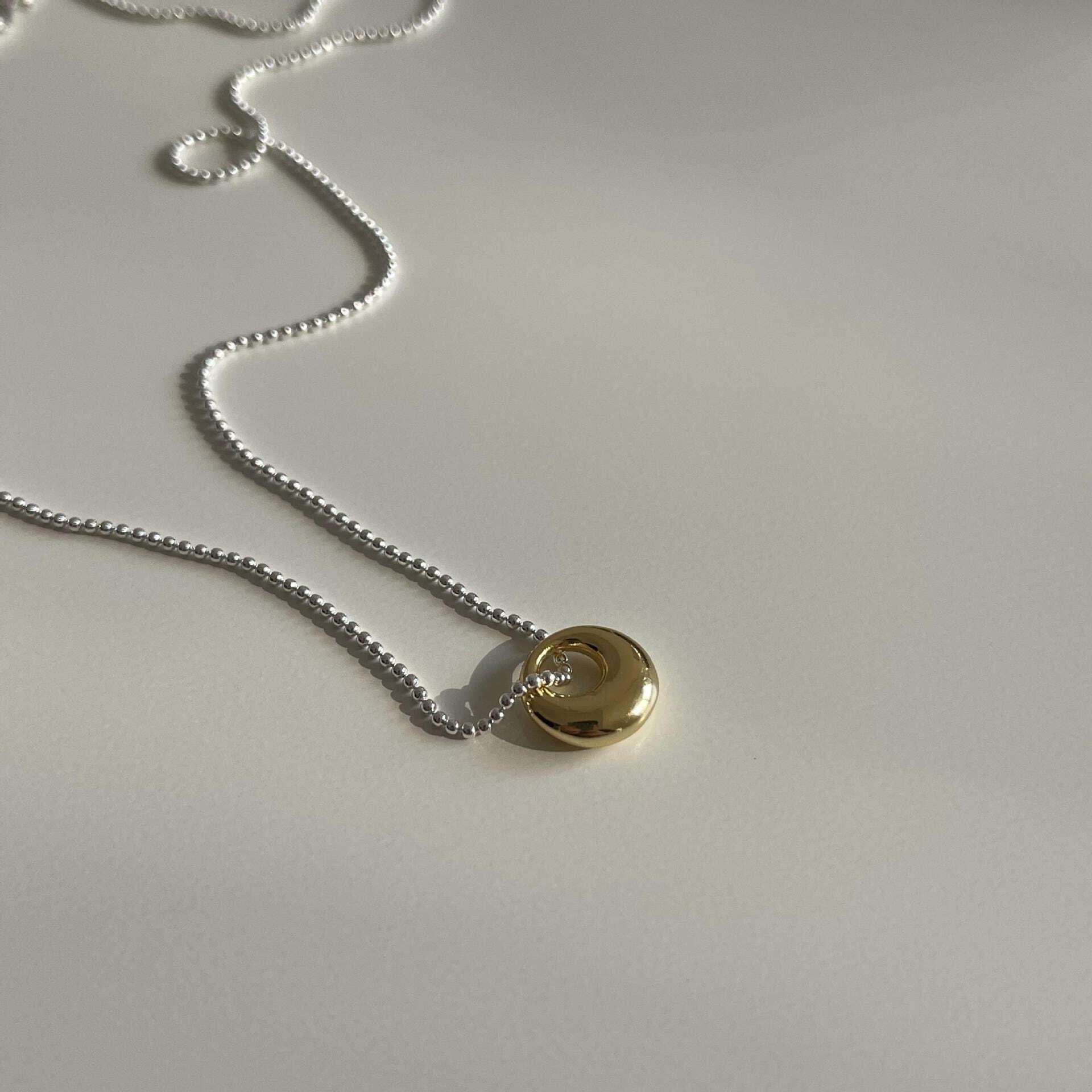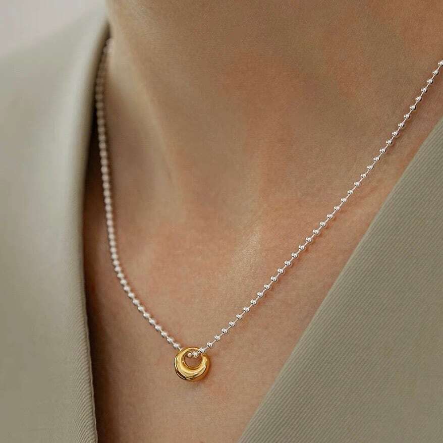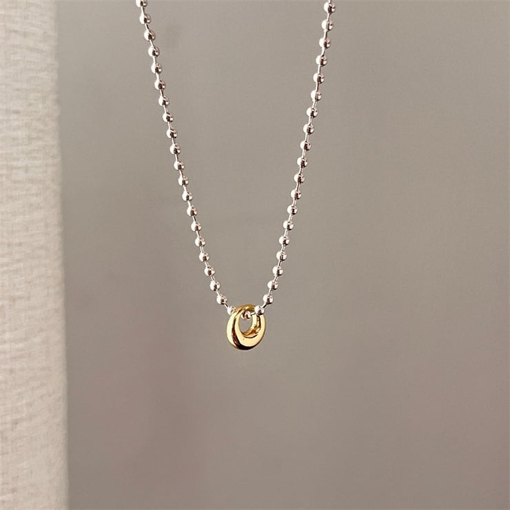 シンプルながらも存在感のある、ゴールド×シルバーのコンビネックレス。