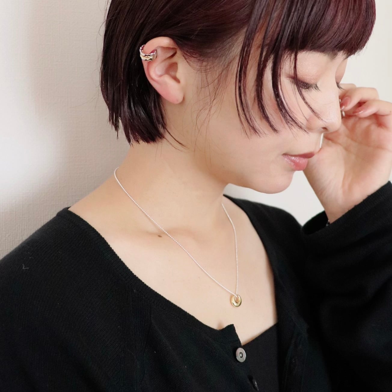 ぷっくりとした滑らかなフォルムが印象的なチャームは、角度によって柔らかく光を反射し、上品なツヤ感をプラスします。