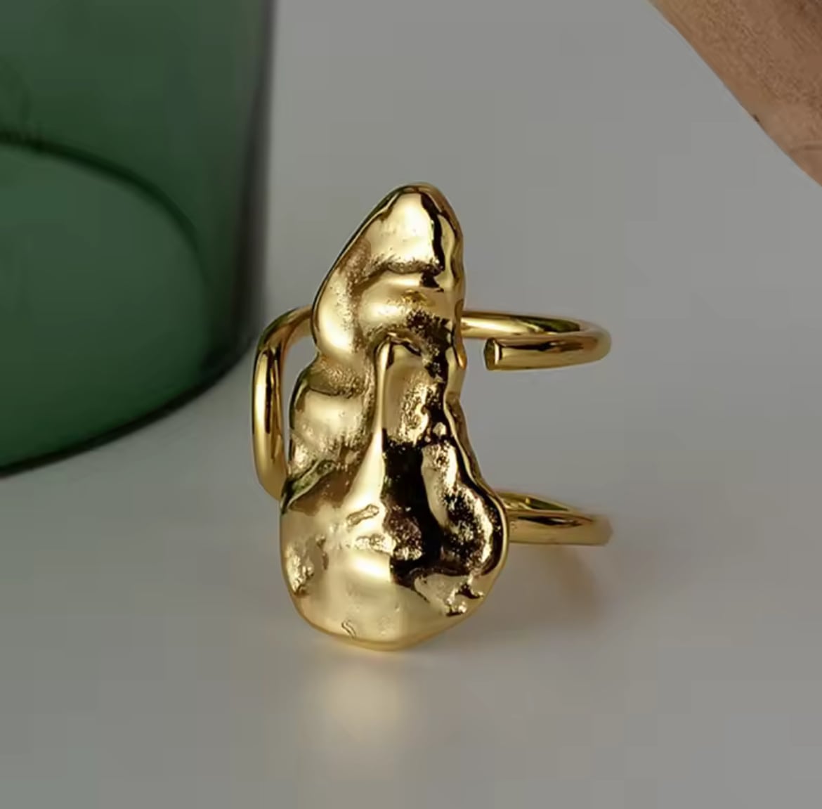 まるで溶け出した金属をそのまま閉じ込めたような、アートなフォルムが印象的なメルトフォームリング。