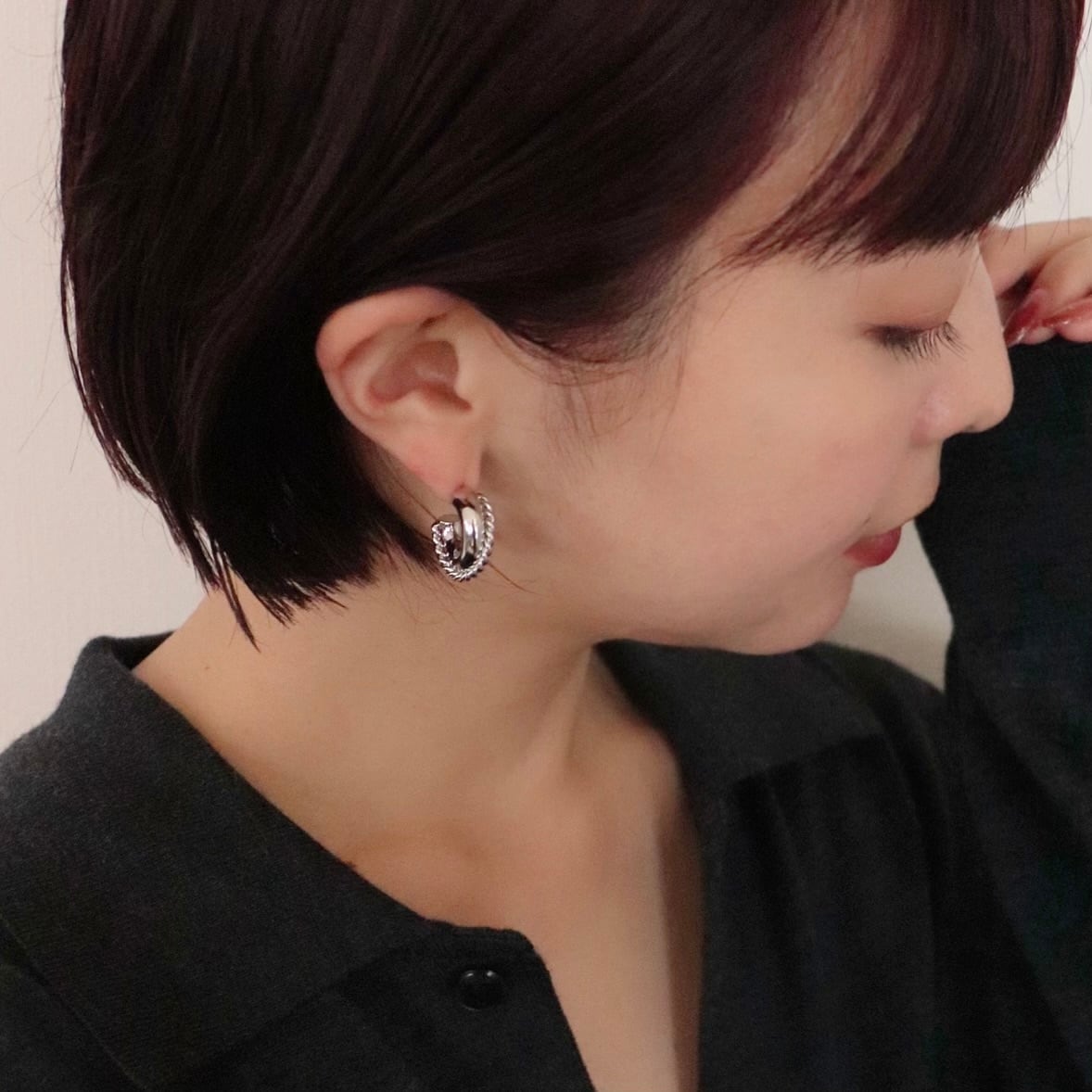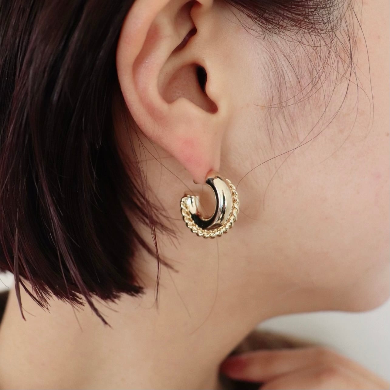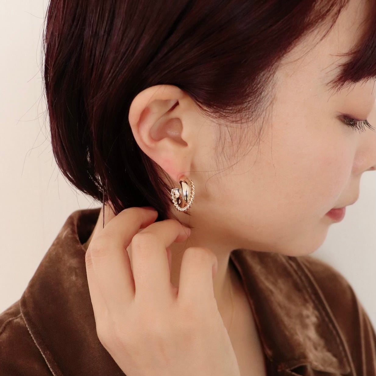立体的なカーブラインに、ロープ状のテクスチャーを重ねたデザインフープピアス。