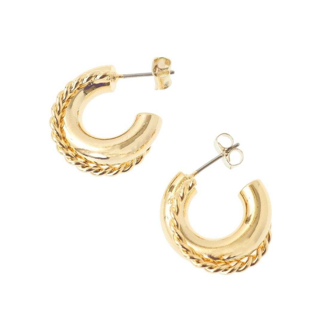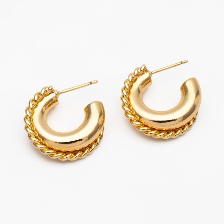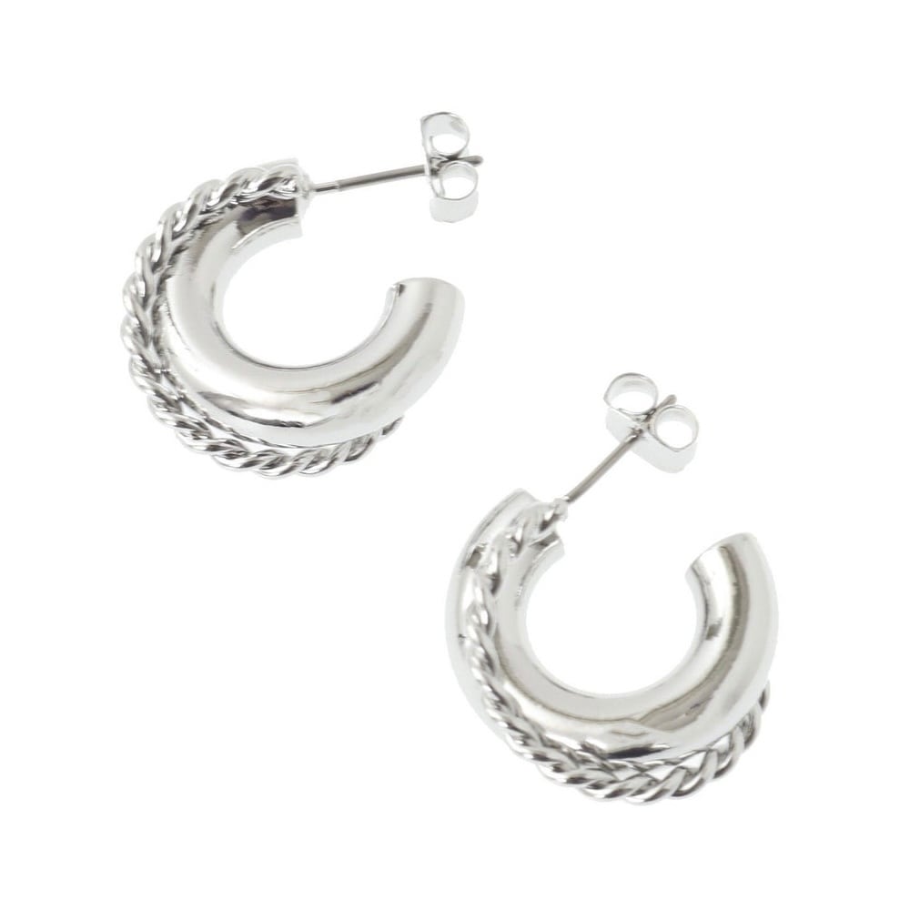 立体的なカーブラインに、ロープ状のテクスチャーを重ねたデザインフープピアス。