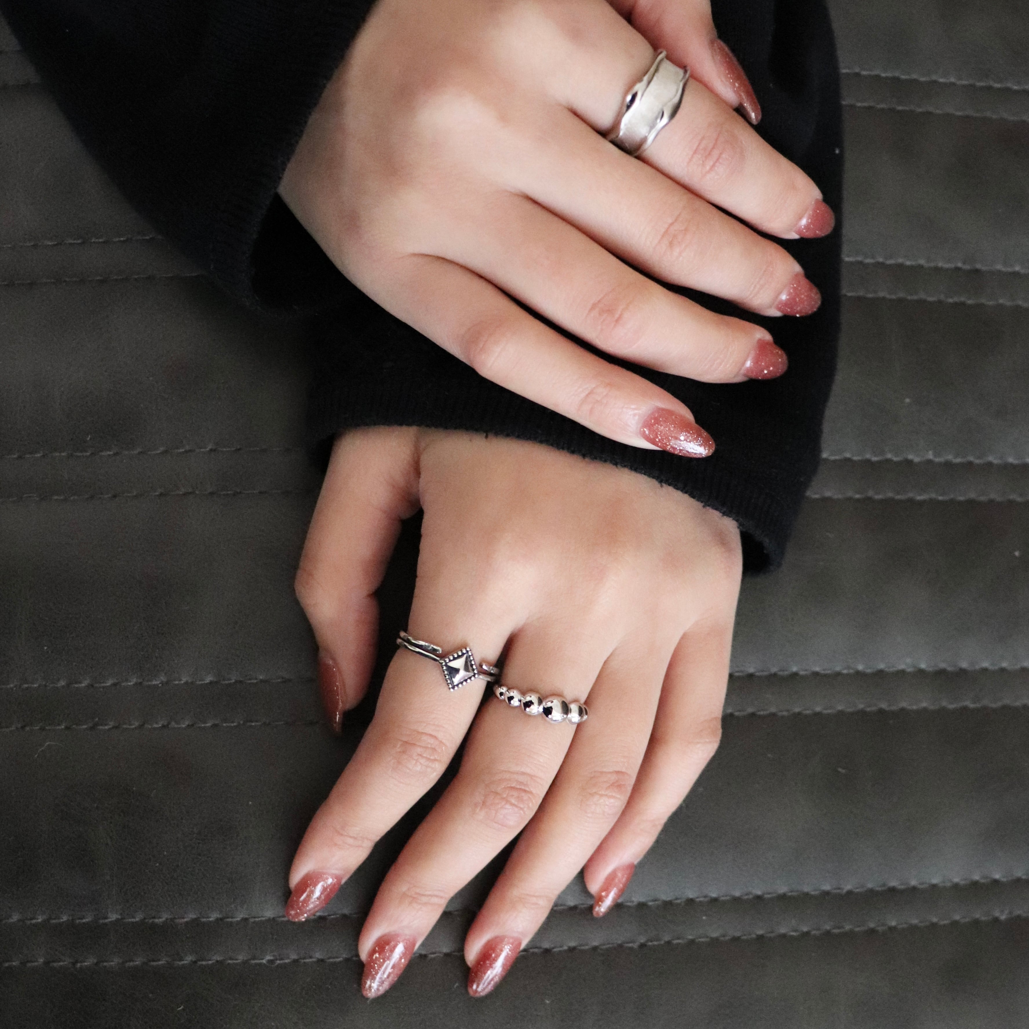 二重に重なったようなスプリットラインがモードな抜け感をつくり、シンプルなのに視線を奪う “都会的ミニマル” を叶えてくれます。