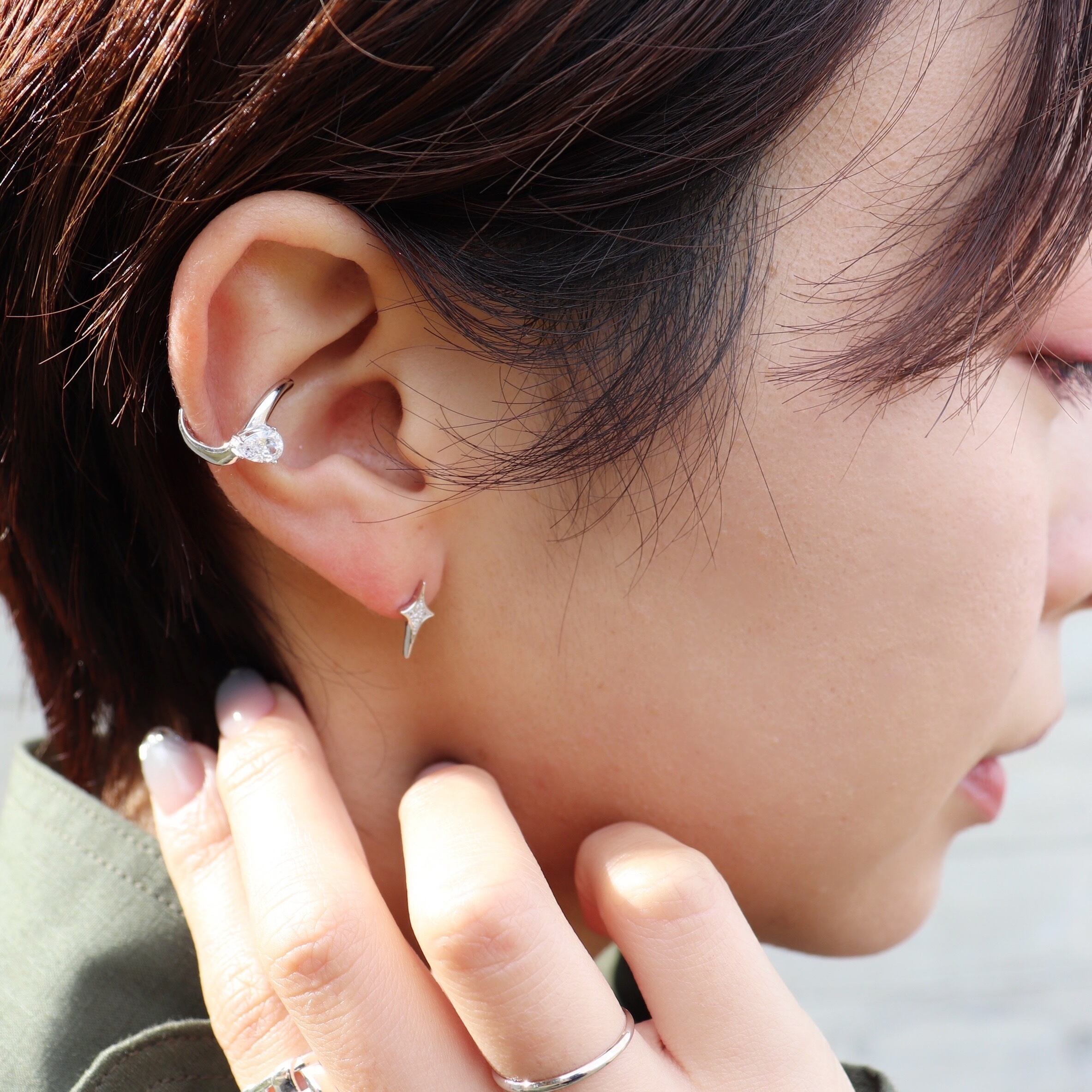 silver925素材の深く透き通る、美しく輝く一粒石深い透明感と輝きを放ち、女性らしいさをしっかり出しながら上品な雰囲気で、耳元をさりげなく華やかに見せてくれる一品です。