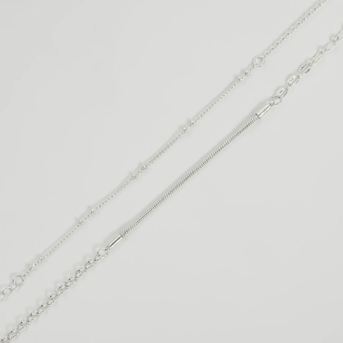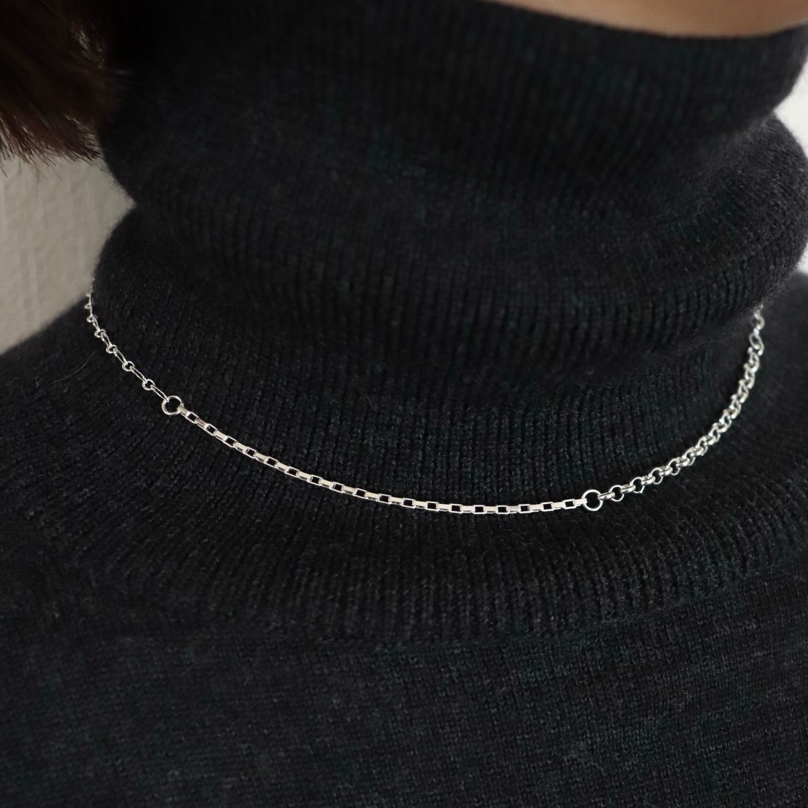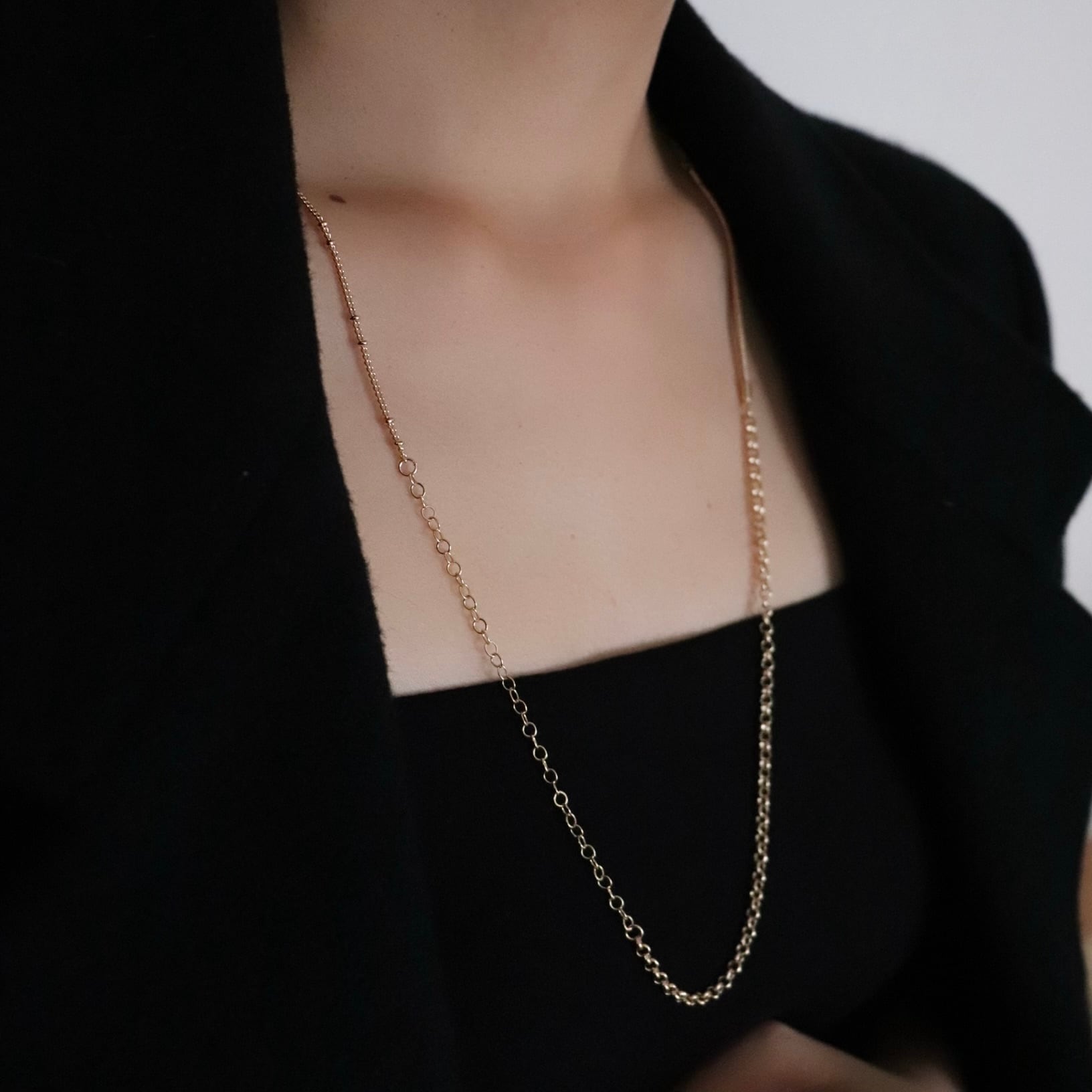 異なる数種類のチェーンを組み合わせた、上品なセットネックレス。