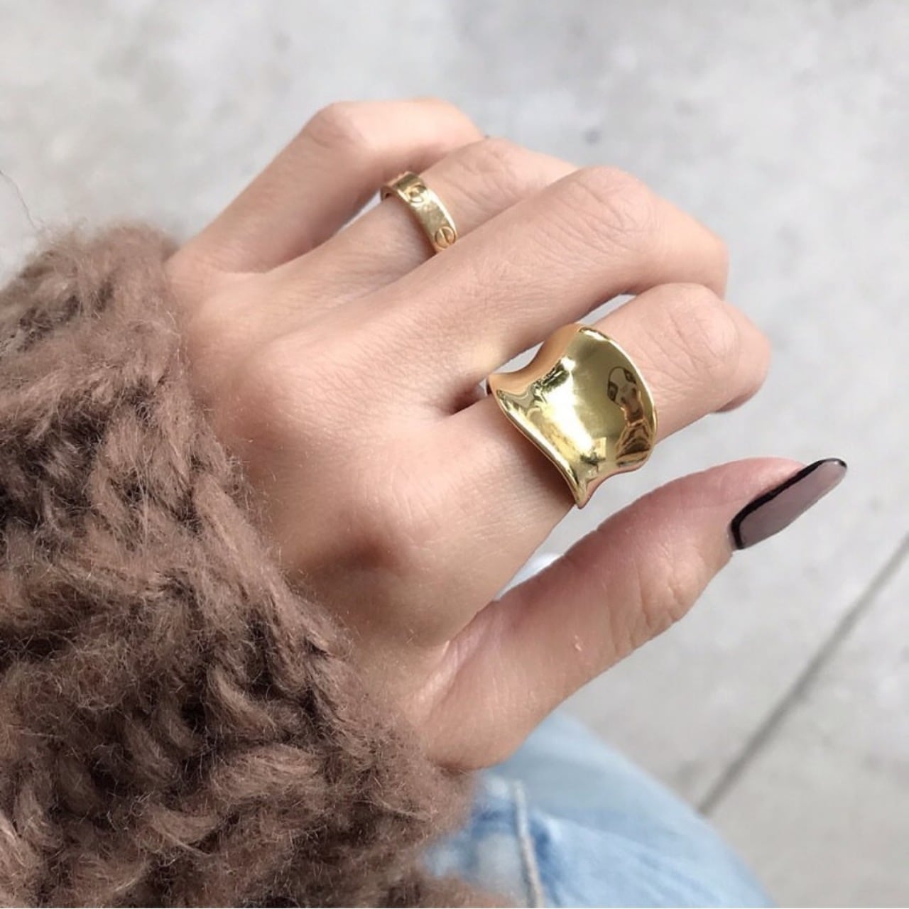 重厚感がありますがずっと着けていたくなる指馴染みの良さも魅力です。