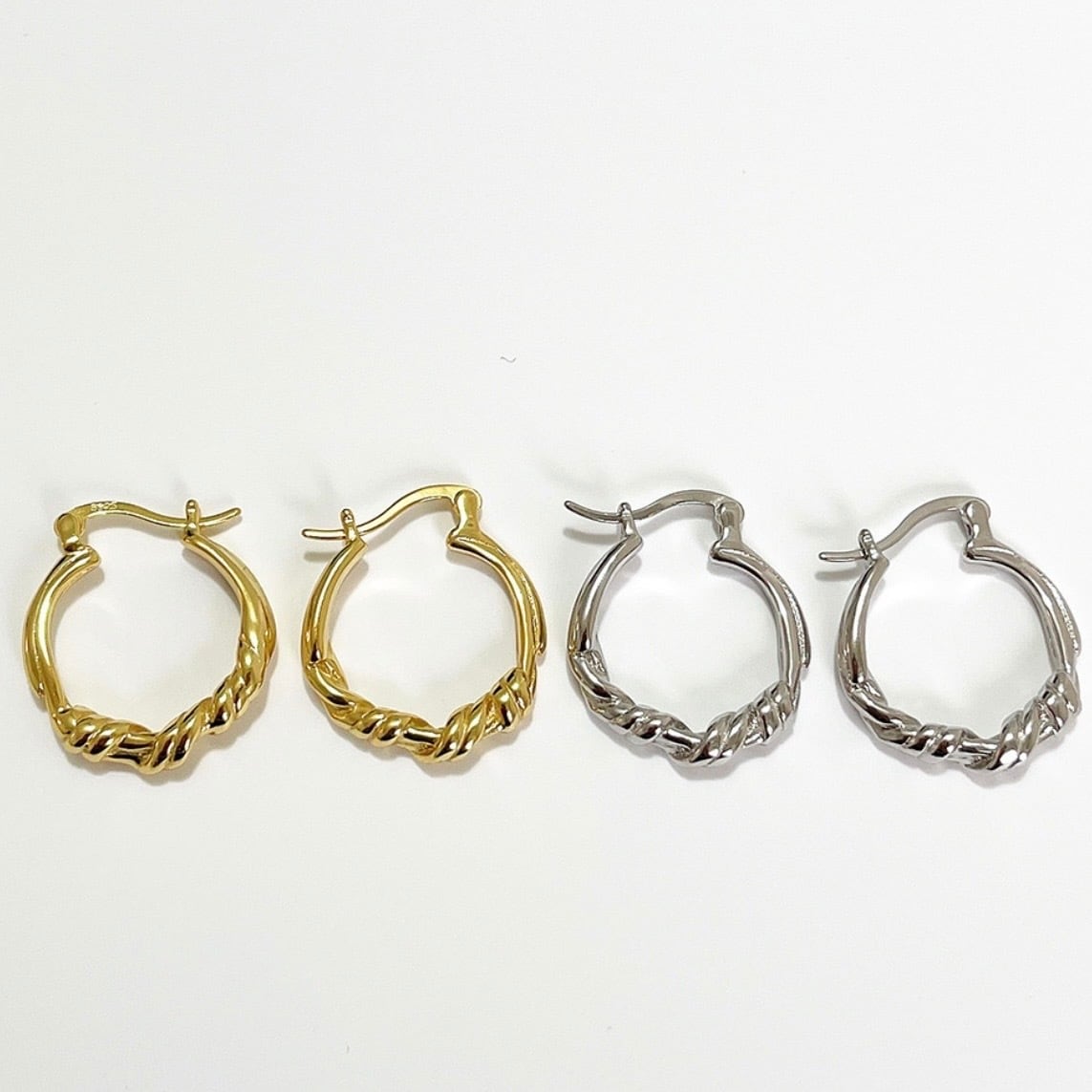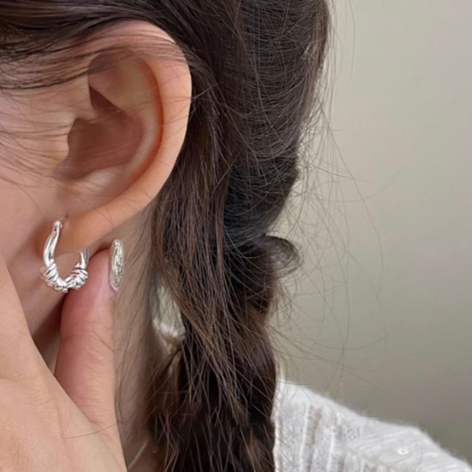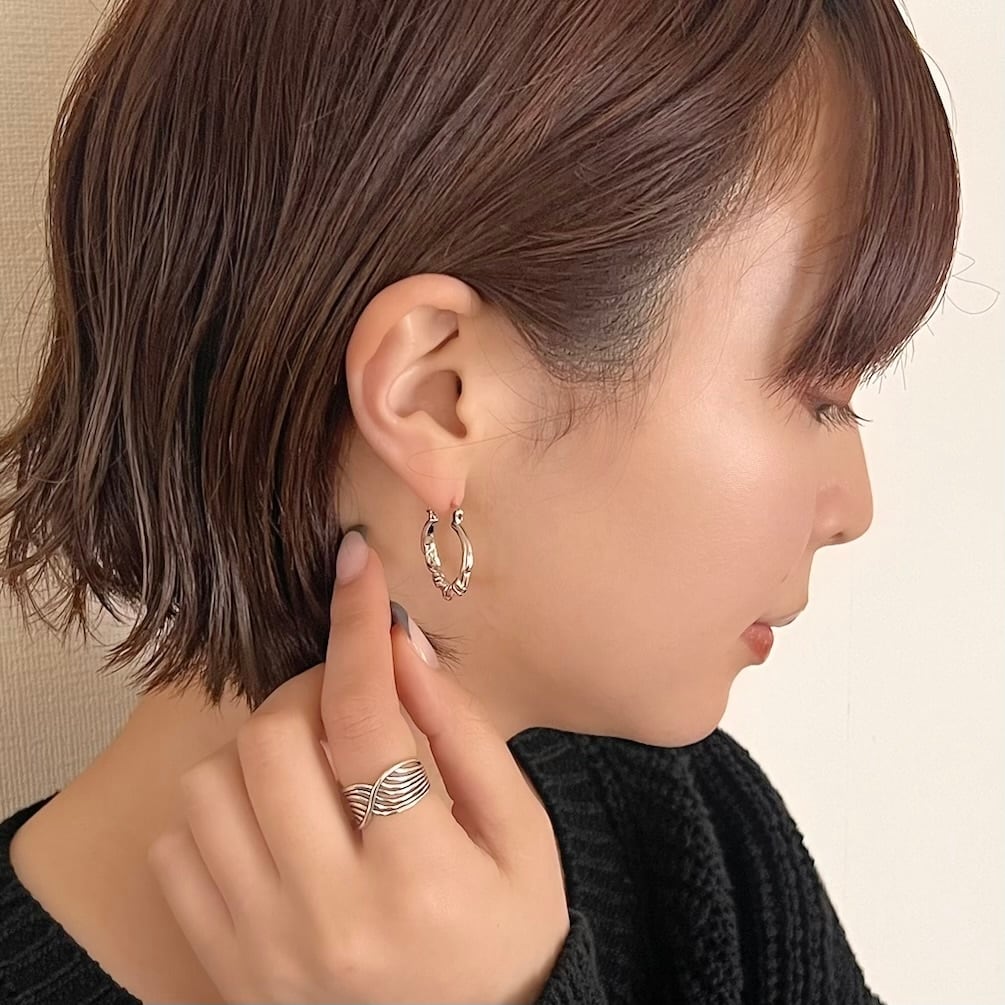 ほどよいボリューム感と、さりげなくひねりを加えたツイストデザインが魅力のSV925フープピアス。