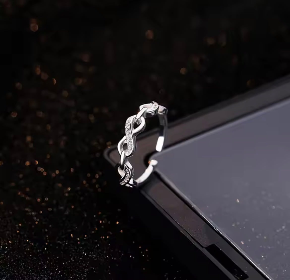 流れるように連なるチェーンデザインが、指元にやさしい輝きを添えるリング。