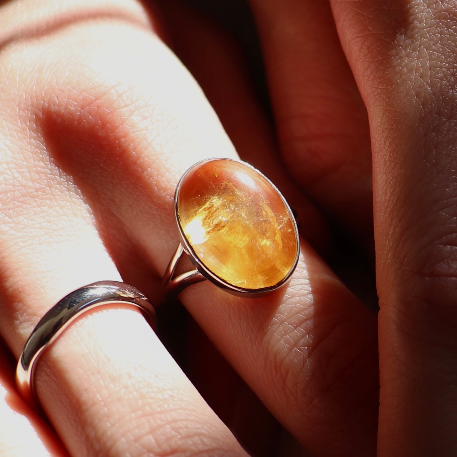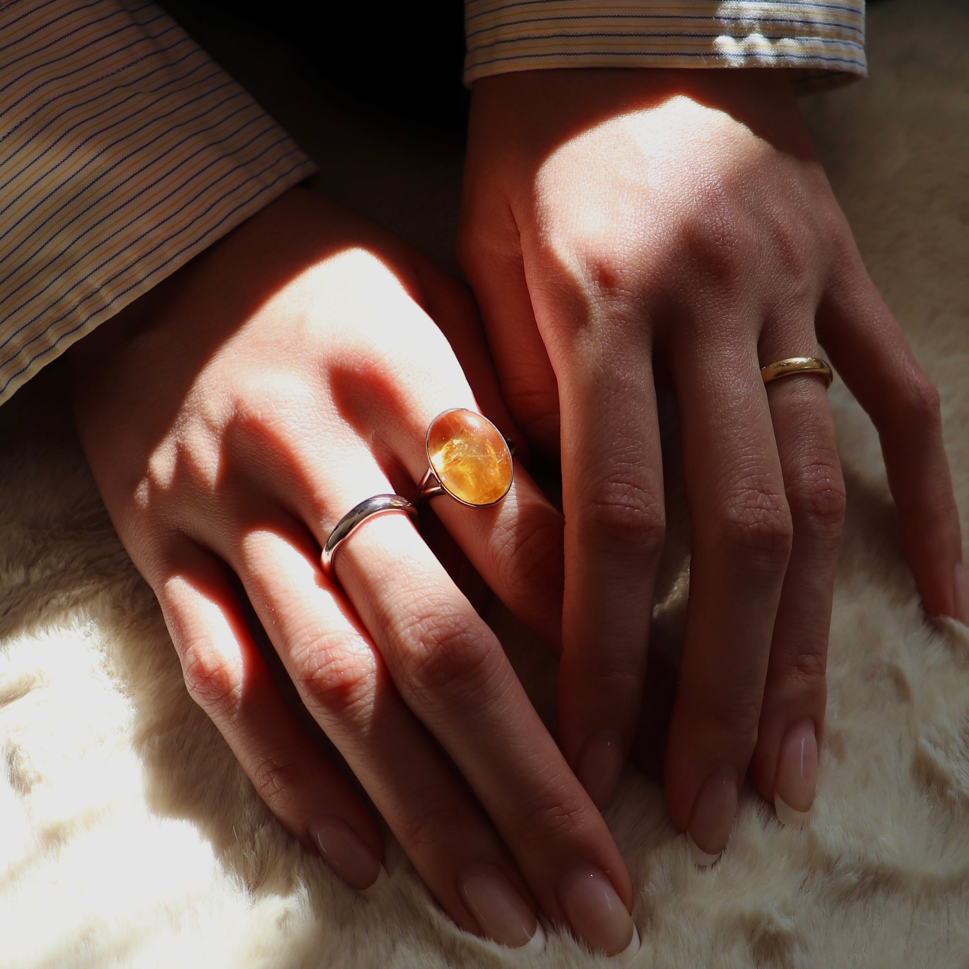 太陽のような明るさを宿すシトリンを主役に仕立てた一点物のリング。