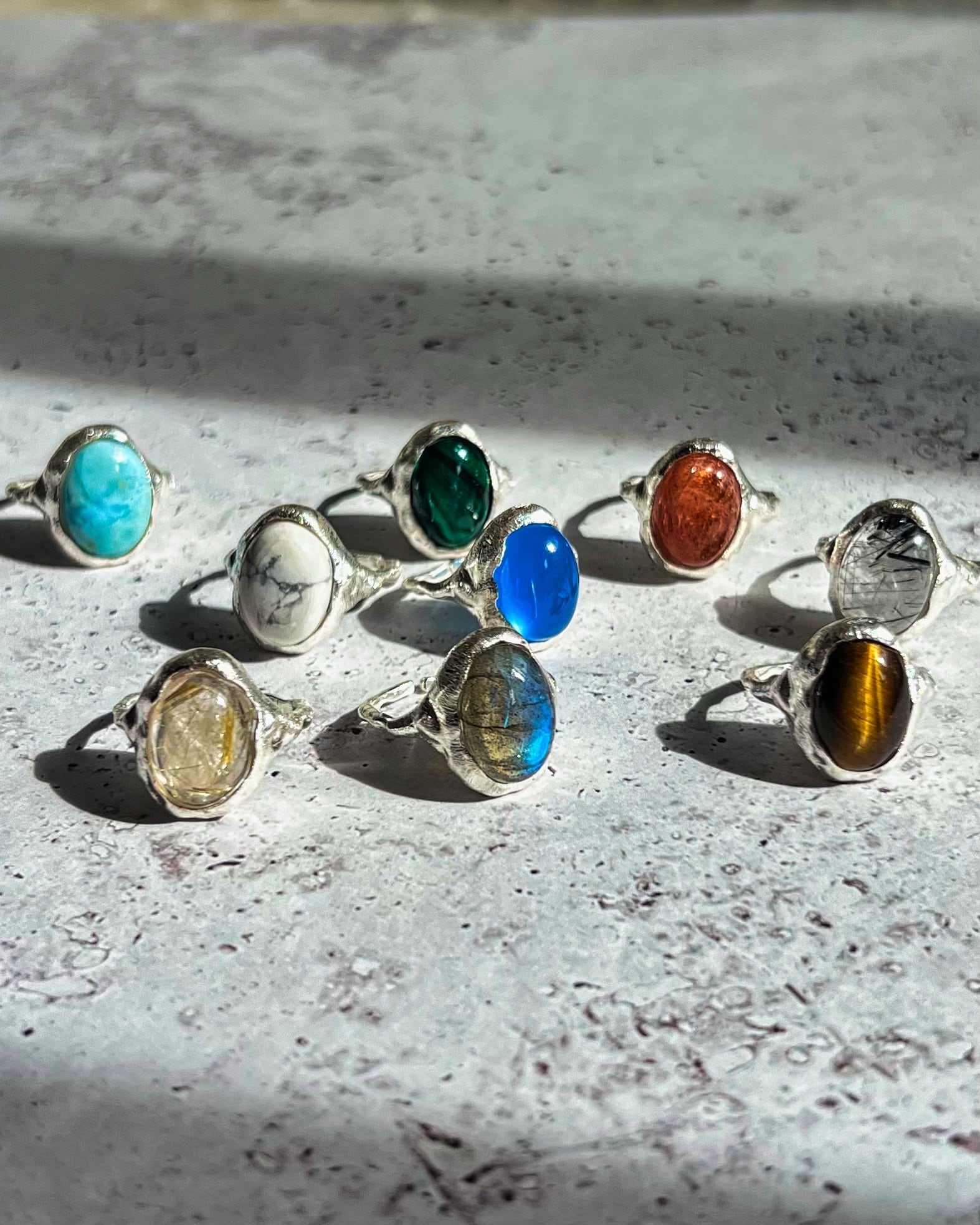 程よい抜け感のあるフォルムが指元に軽やかさを与え、天然石の美しさをより一層引き立てます。