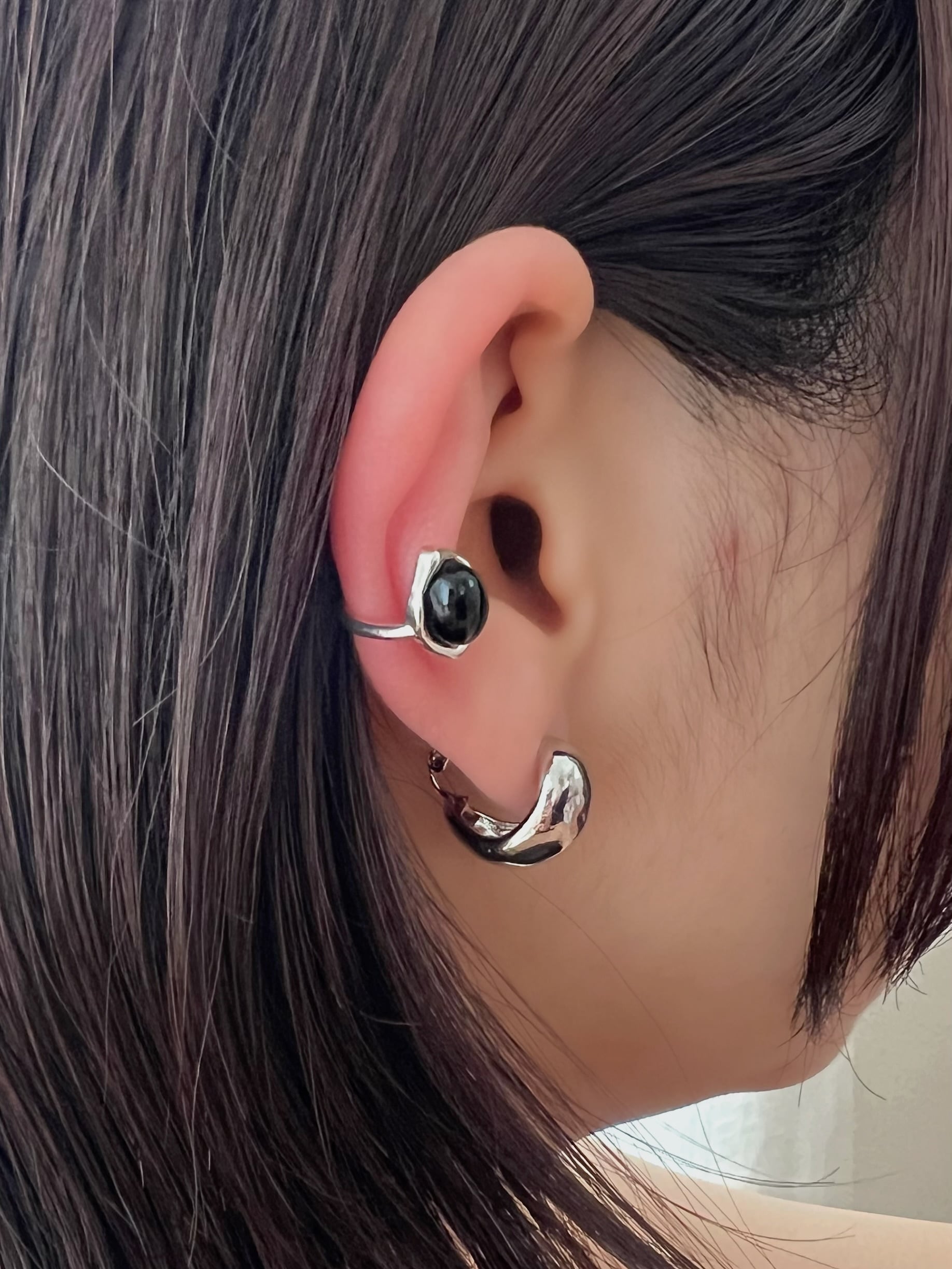 ブラックオニキスをそっと優しく包み込むようにデザインされたイヤーカフ。