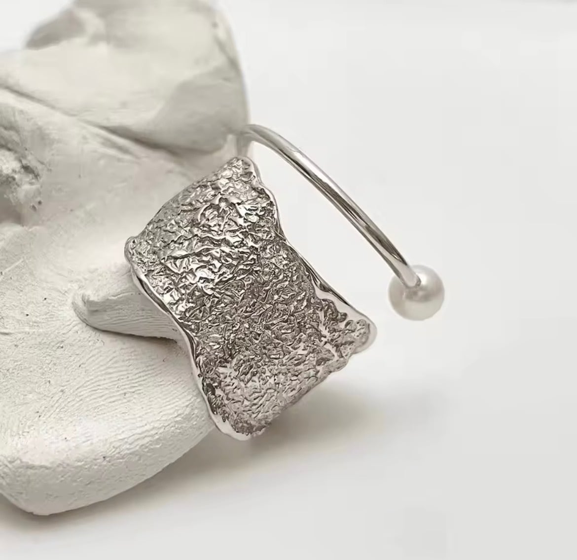 表面にはあえて凹凸のあるテクスチャーを施し、まるで自然のかけらのような、ラフで立体的な表情に仕上げました。