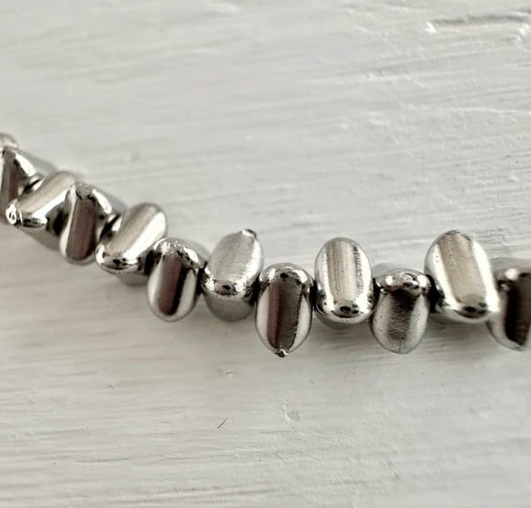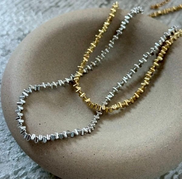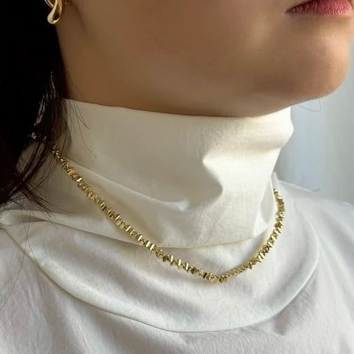 三角型のメタルビーズをラフに並べたデザインショートネックレス。