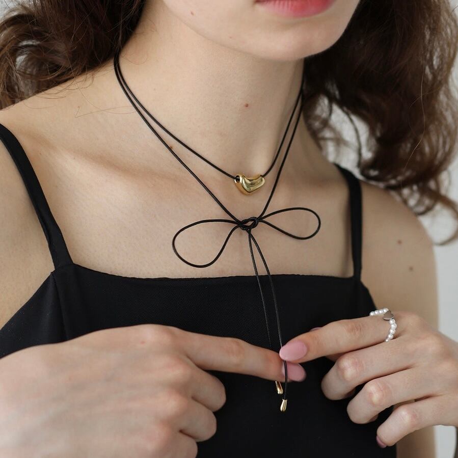 コード部分はブラックのチョーカーデザインで甘くなりすぎずカジュアルにつけられます。