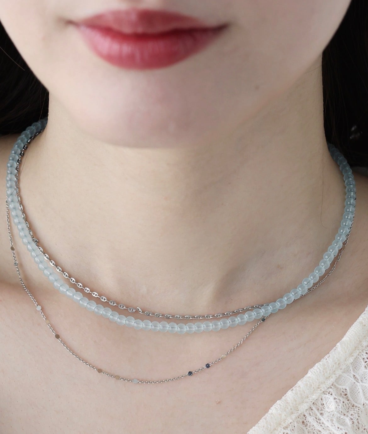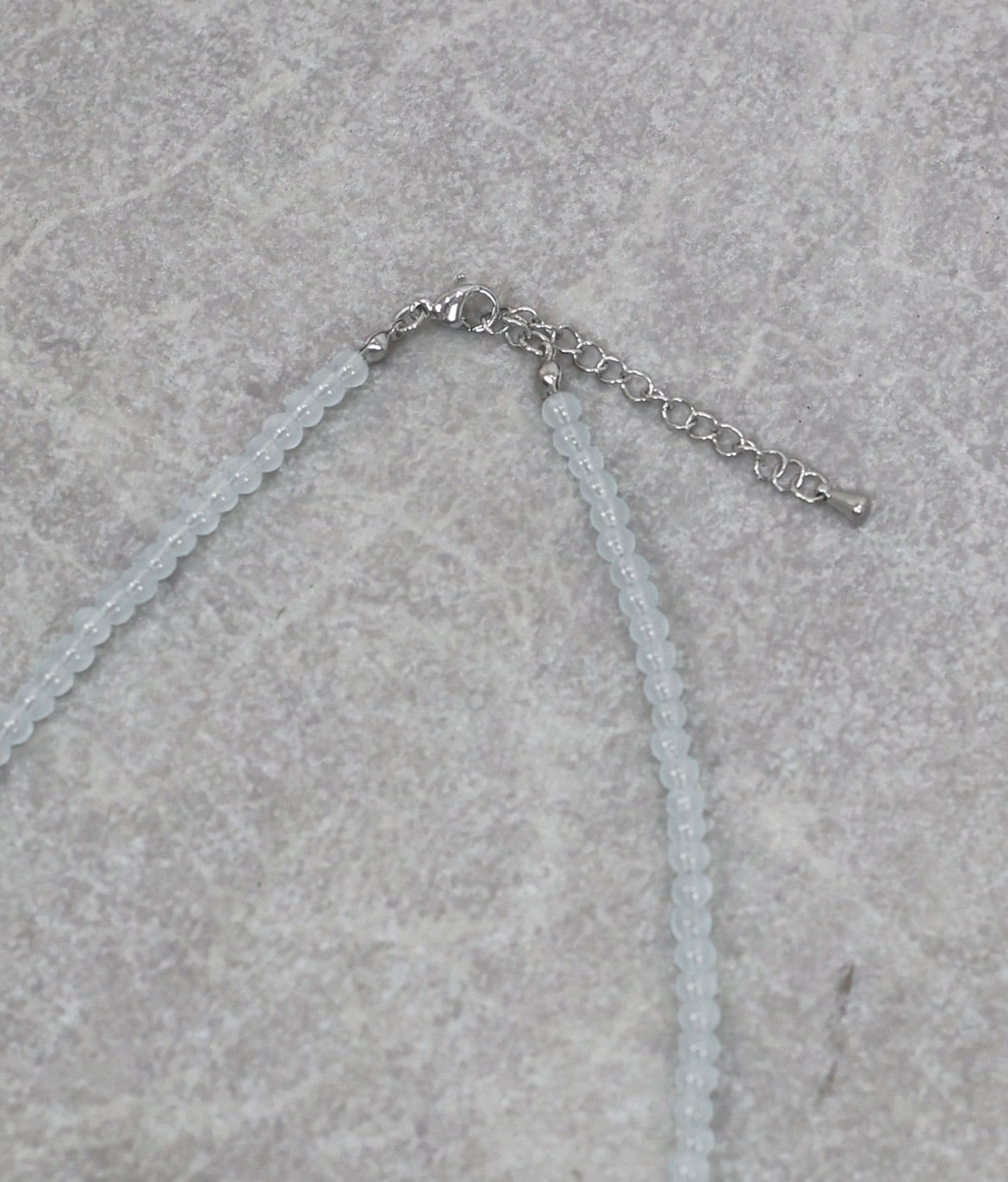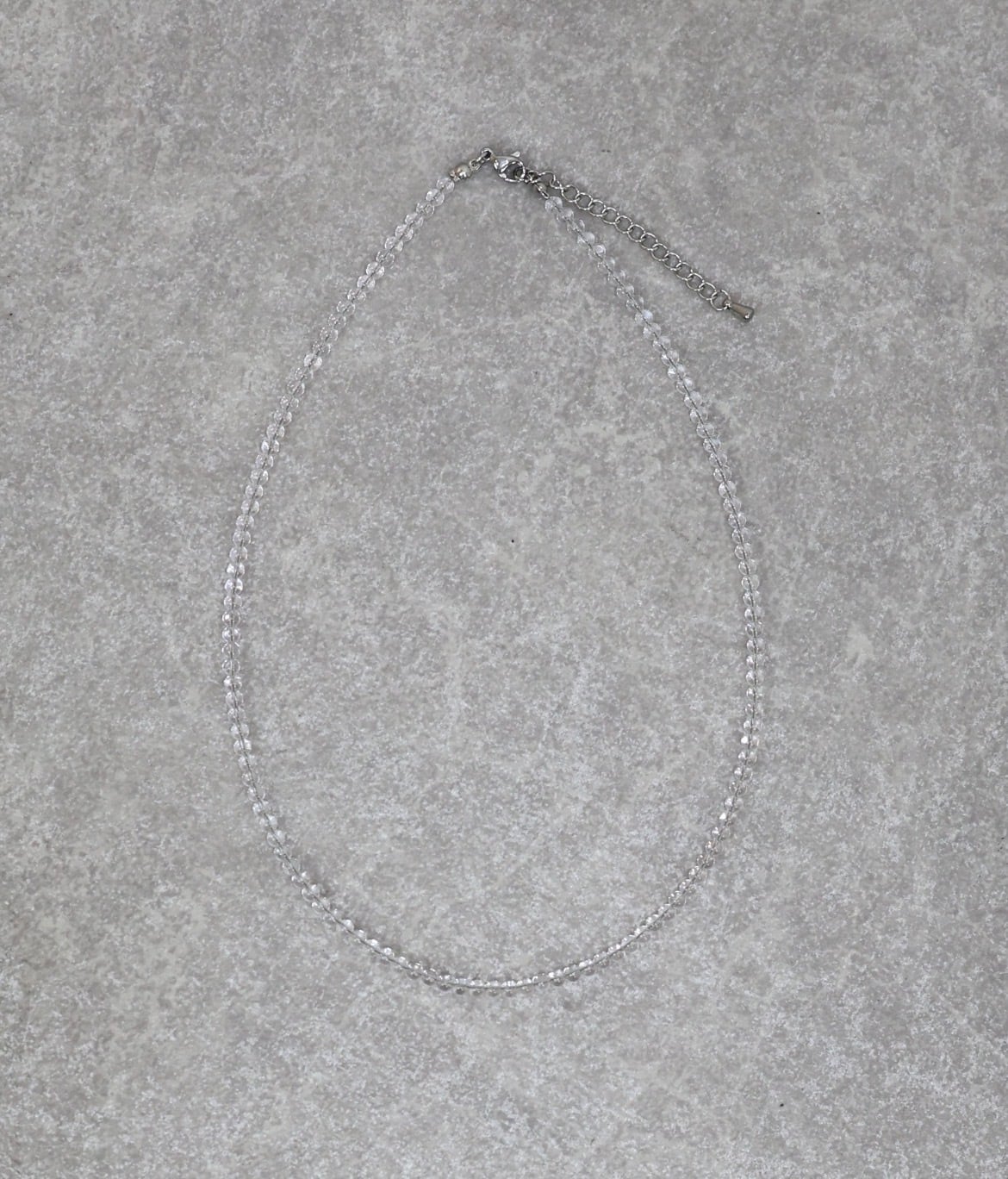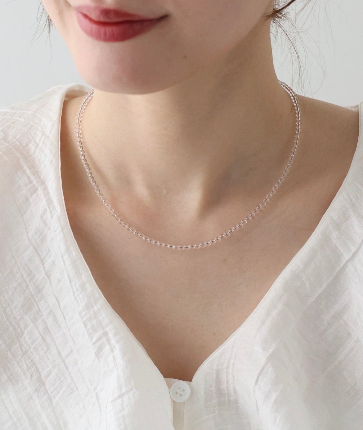 透け感のあるクリアで主張しすぎないカラーで、他のネックレスとレイヤードするのも◎